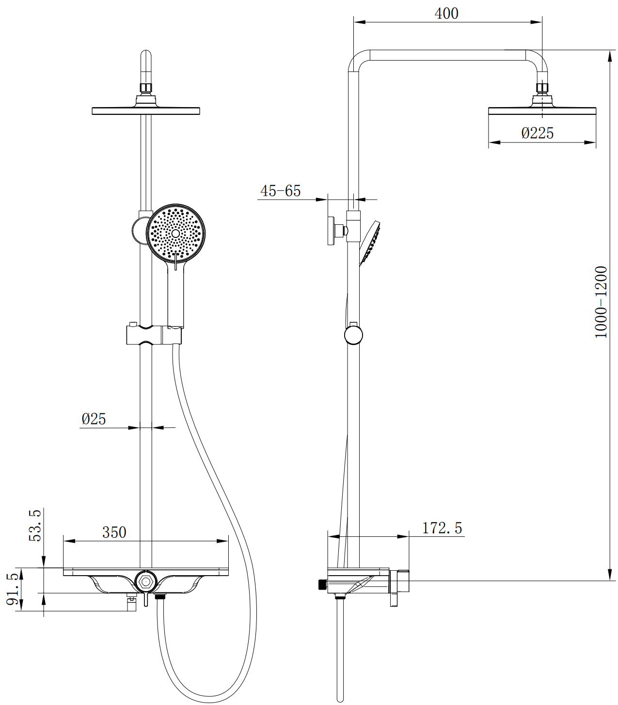 Grootte van de regendouche: ø225 mm