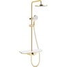 De douchekraan met een plank voor cosmetica is een functionele oplossing die gebruiksgemak combineert met esthetiek. De plank maakt het mogelijk om cosmetica, zepen, shampoos en andere accessoires binnen handbereik te houden tijdens het baden.