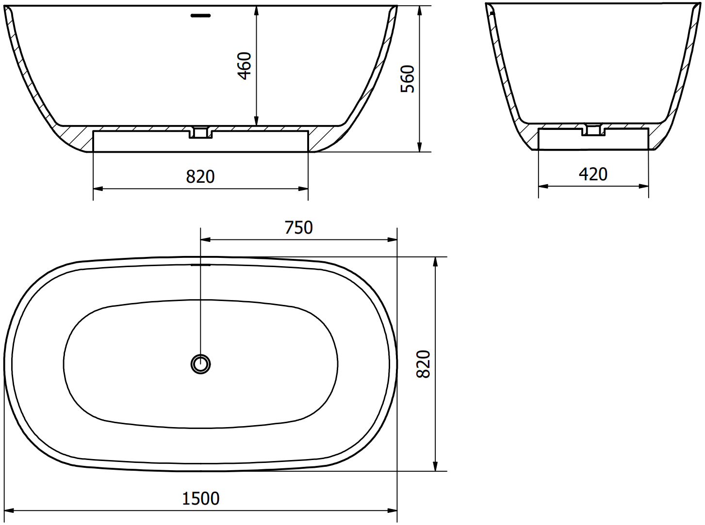 Mexen Como vrijstaande badkuip uit composiet 150 x 82 cm, wit glans - 57311508210