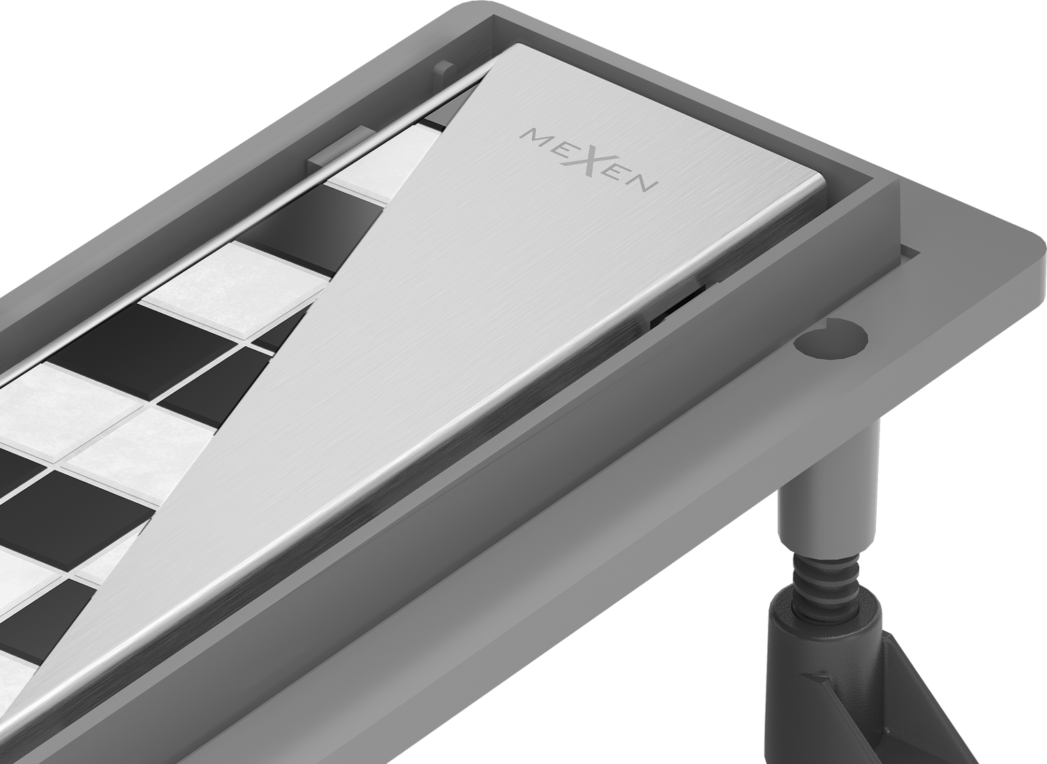De afvoer is uitgerust met verstelbare pootjes, die het mogelijk maken om de juiste hoogte van de afvoer aan te passen en waterpas te stellen op een ongelijke ondergrond. Op deze manier is de afvoer nog beter aangepast aan de omstandigheden van de betreffende badkamer.