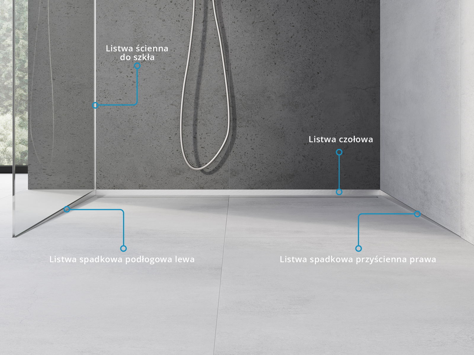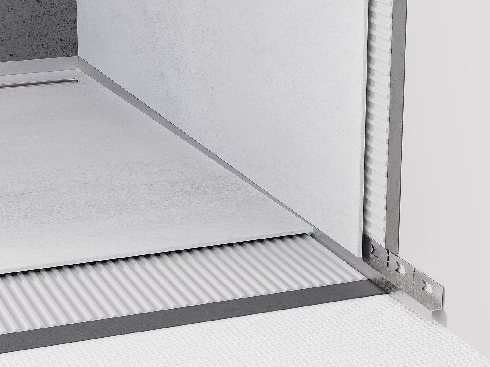 De aflopende strip heeft een nauwkeurig afgestelde hoek die water effectief naar de afvoer leidt en voorkomt dat het zich ophoopt op het vloeroppervlak. Dit zorgt voor een effectieve afvoer van water, minimaliseert de kans op plassen en zorgt voor een droog en veilig oppervlak.
