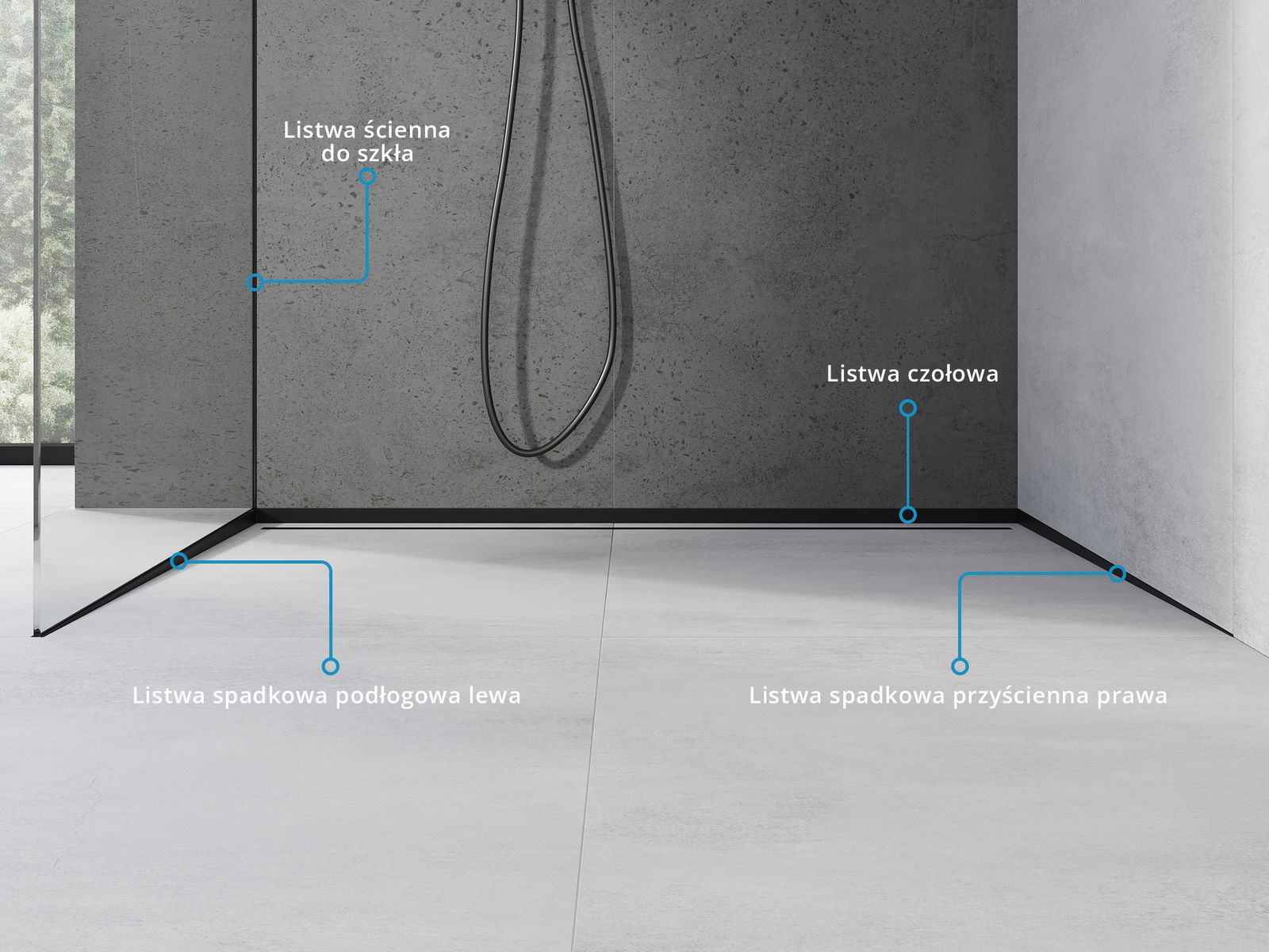 De strip heeft ruimte voor de installatie van een douchewand, wat niet alleen het installatieproces vergemakkelijkt, maar ook de afwerking kan verbergen met behulp van siliconen