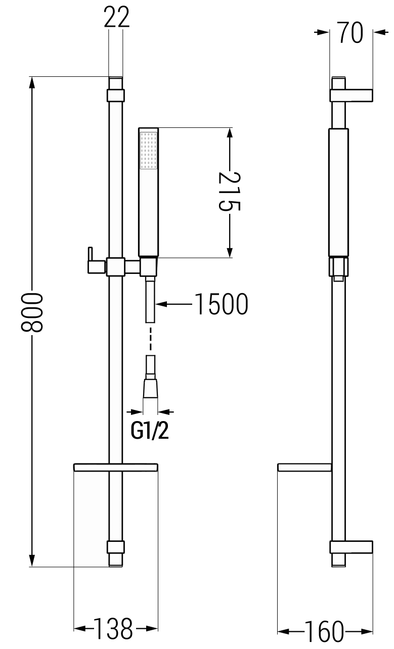 Hoogte van de douchekop: 225 mm