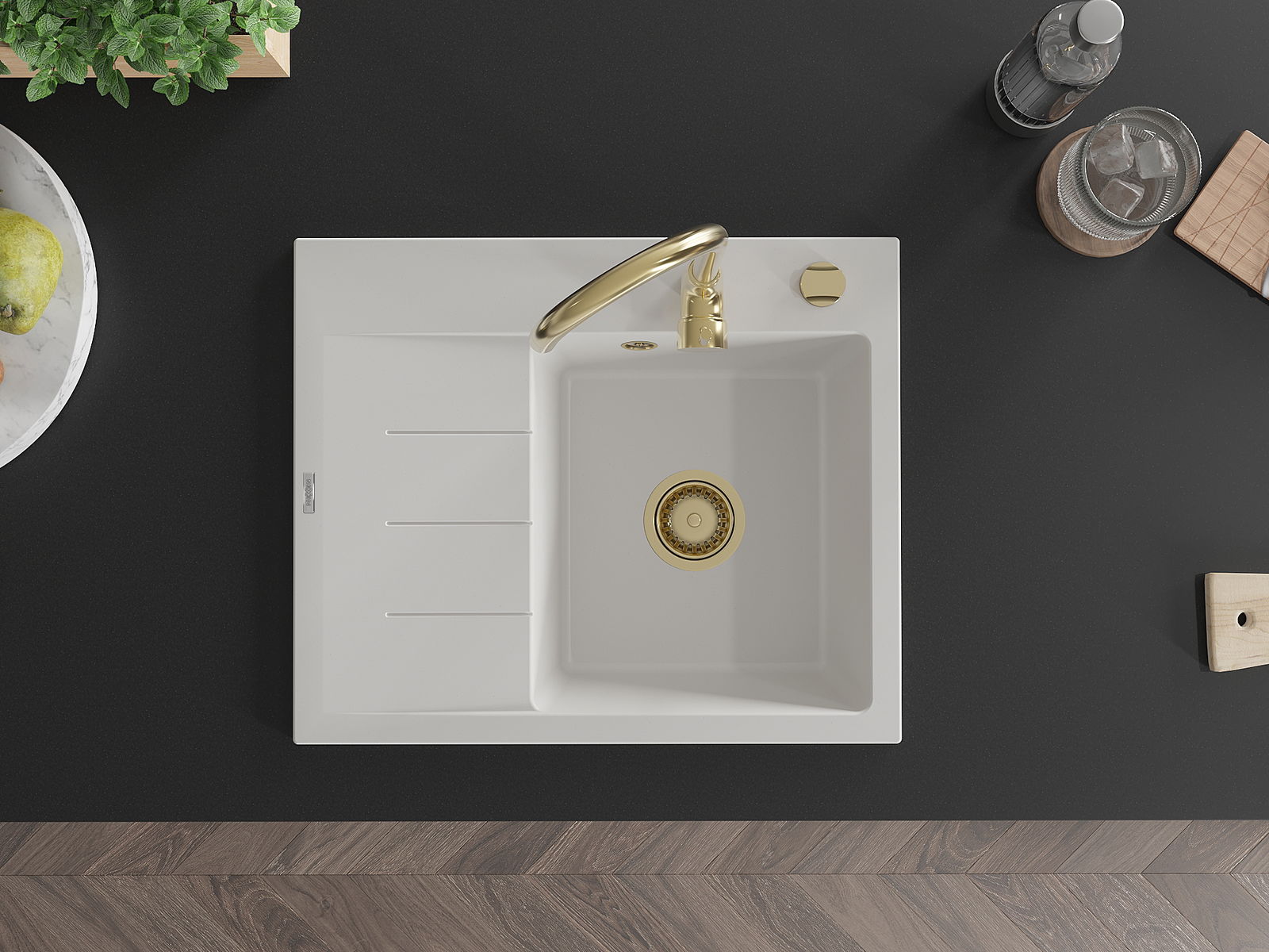 De gootsteen is gemaakt van hoogwaardig graniet. Het vormt een elegante en vooral praktische aanvulling op elke keuken, ongeacht de stijl ervan. De hoge kwaliteit en duurzaamheid van graniet garanderen jarenlang gebruik.