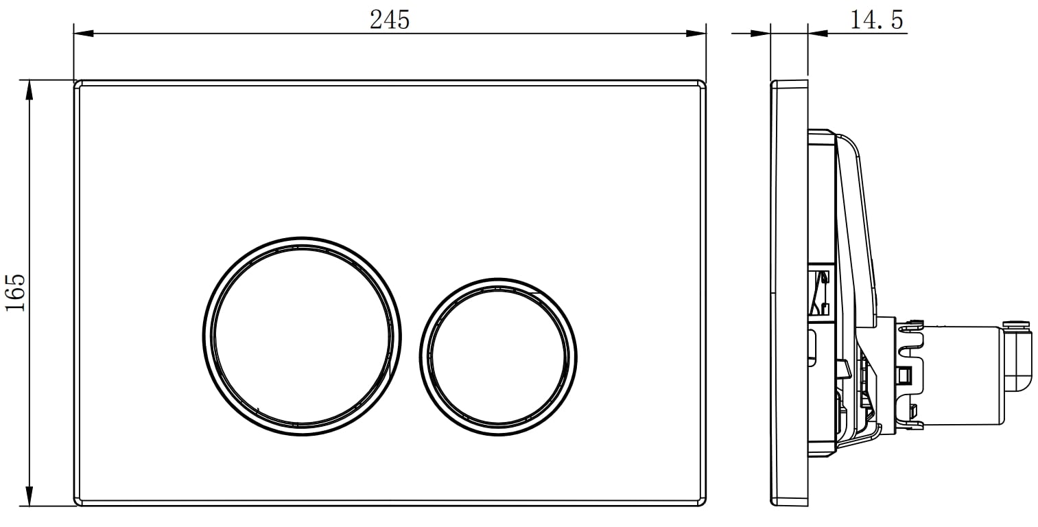 Het product heeft 2 knoppen voor het doorspoelen van water. Een grote knop, bedoeld voor het vrijgeven van een grotere hoeveelheid spoelwater, en een kleine knop voor een kleinere hoeveelheid. Op deze manier kan de gebruiker eenvoudig de hoeveelheid spoelwater aan zijn behoeften aanpassen.