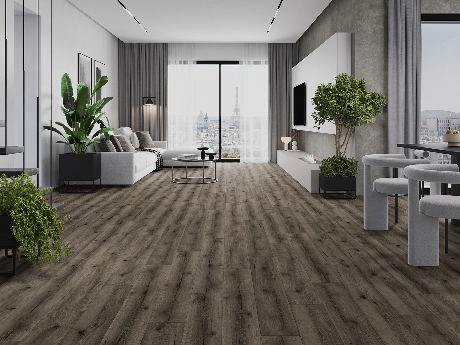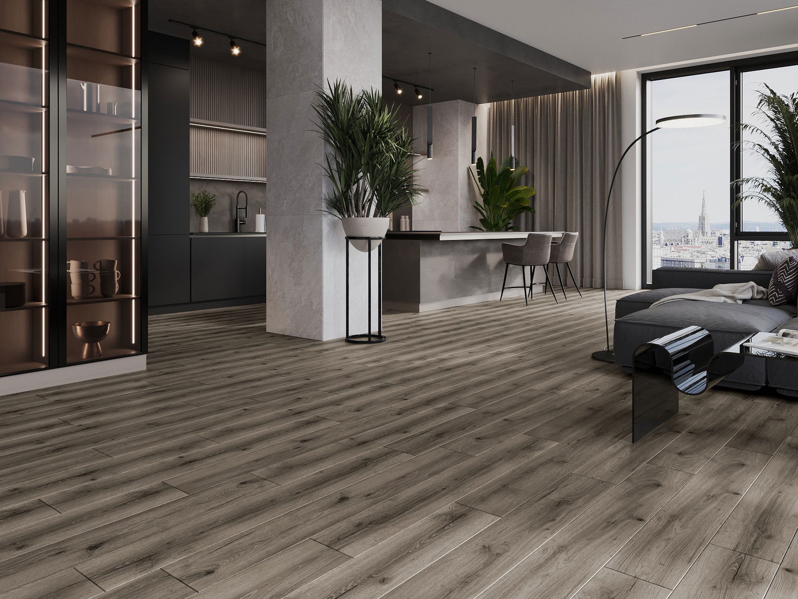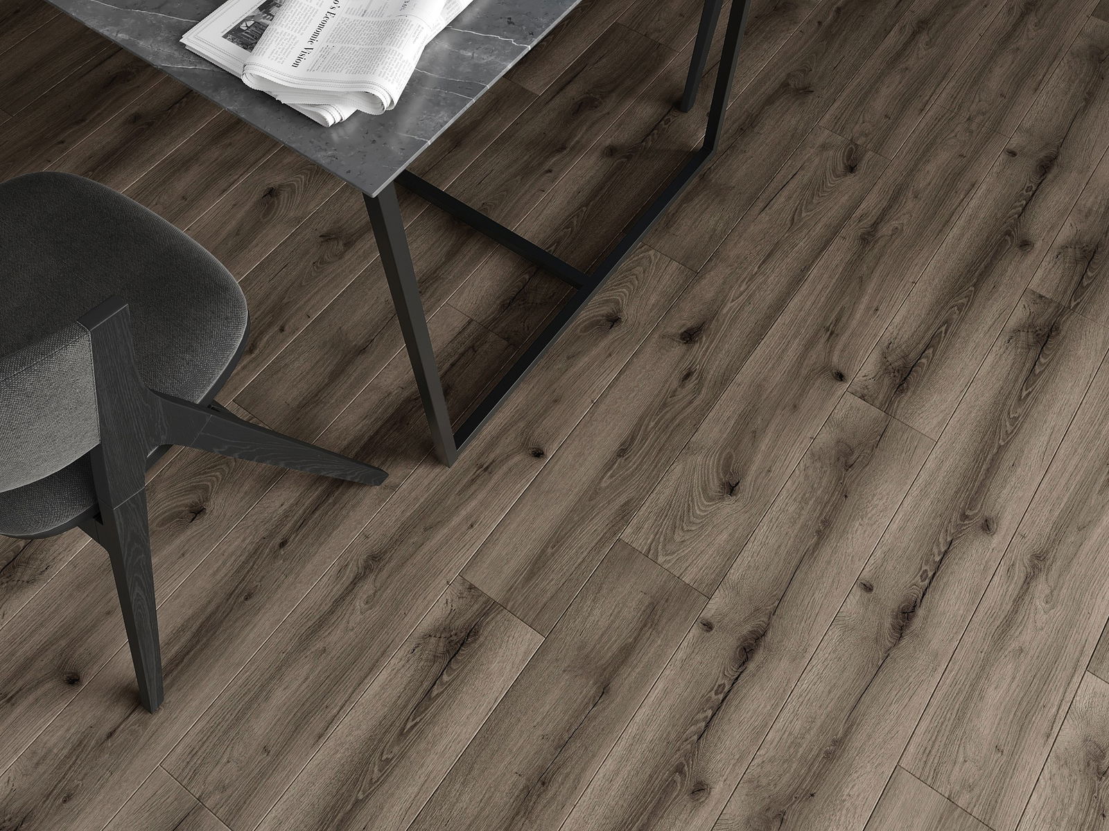 De panelen hebben een 4-zijdige voeg - elke zijde is zo gefreesd dat er bij het leggen een V-vormige verbinding ontstaat. Dit design geeft de vloer een duidelijkere structuur, waardoor het diepte en een esthetisch karakter krijgt. Dit effect wordt vooral gewaardeerd in moderne interieurs, waar details de unieke uitstraling van het interieur benadrukken.