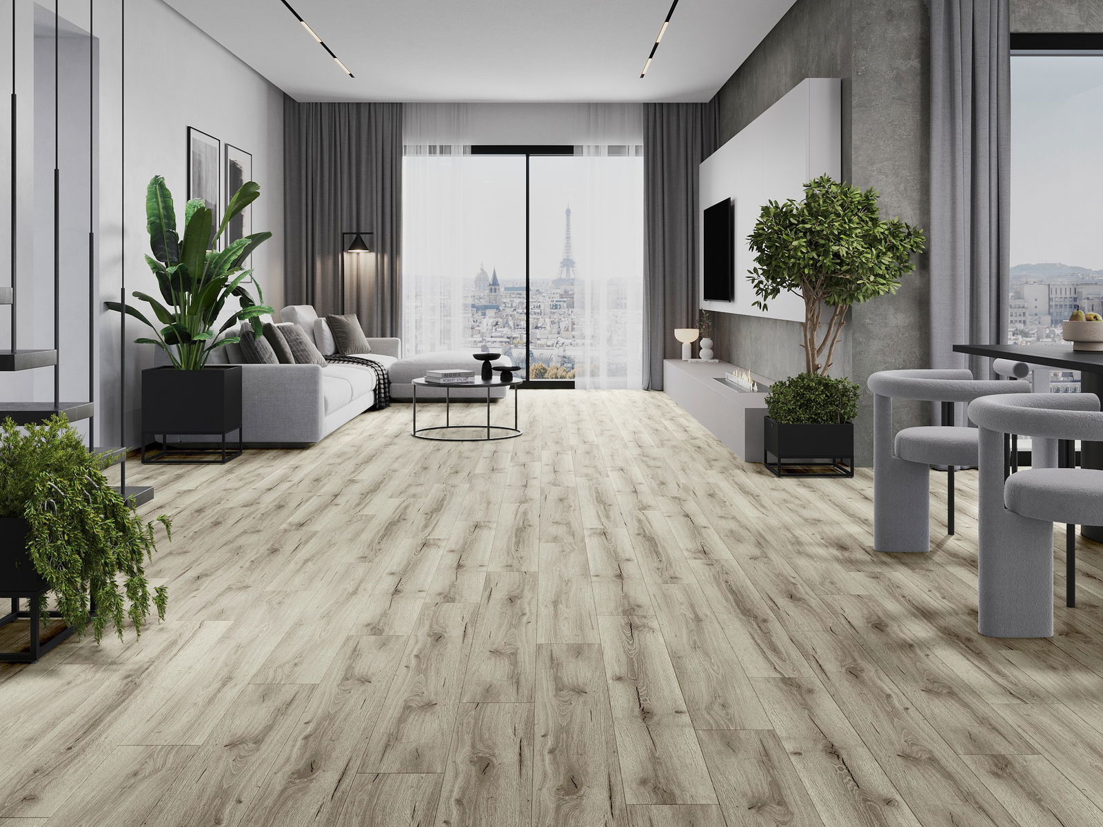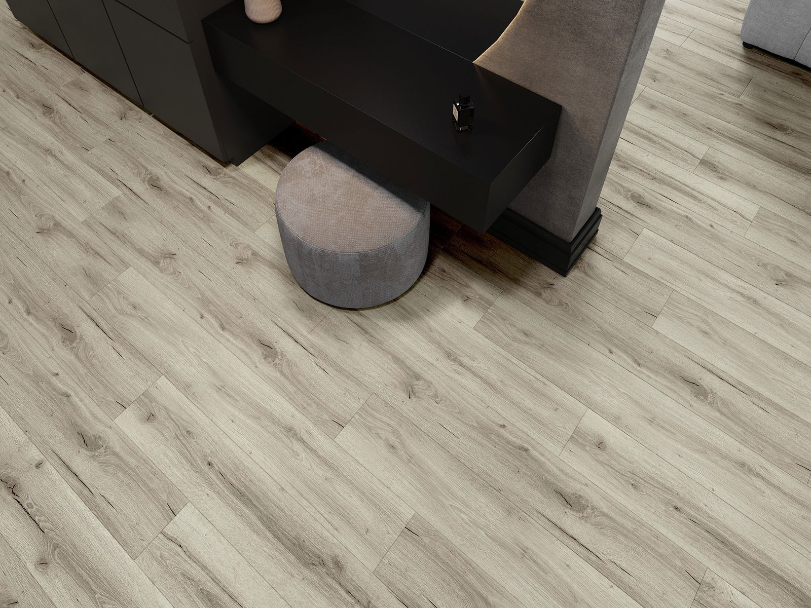 De panelen hebben een 4-zijdige voeg - elke zijde is zo gefreesd dat er bij het leggen een V-vormige verbinding ontstaat. Dit design geeft de vloer een duidelijkere structuur, waardoor het diepte en een esthetisch karakter krijgt. Dit effect wordt vooral gewaardeerd in moderne interieurs, waar details de unieke uitstraling van het interieur benadrukken.