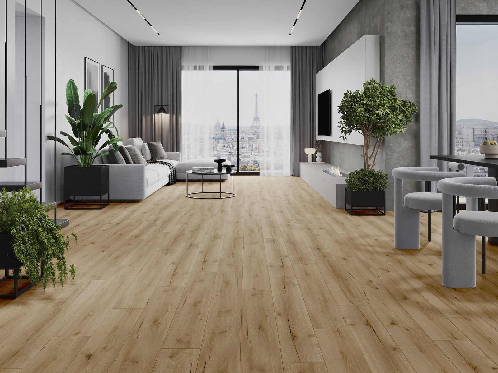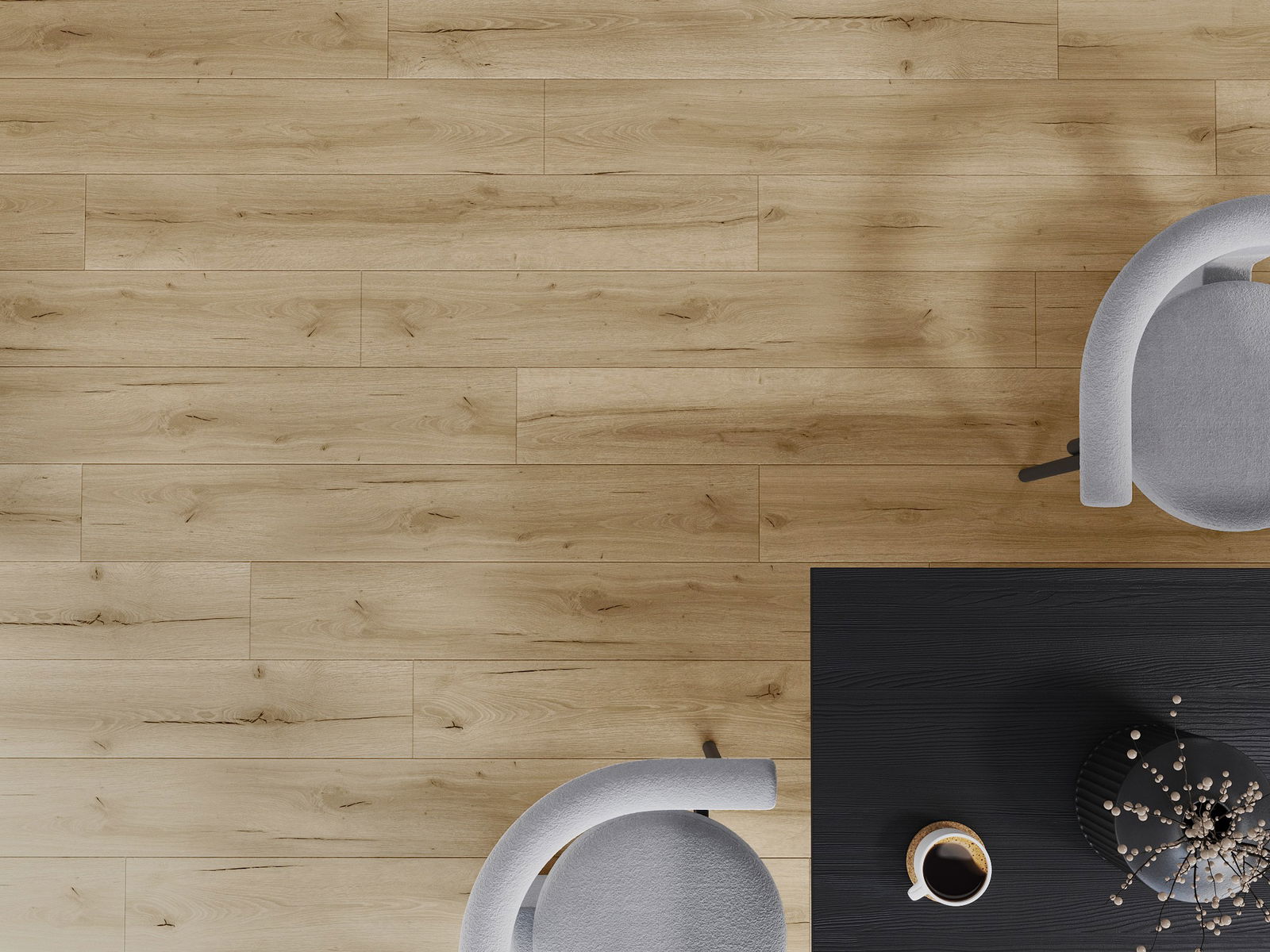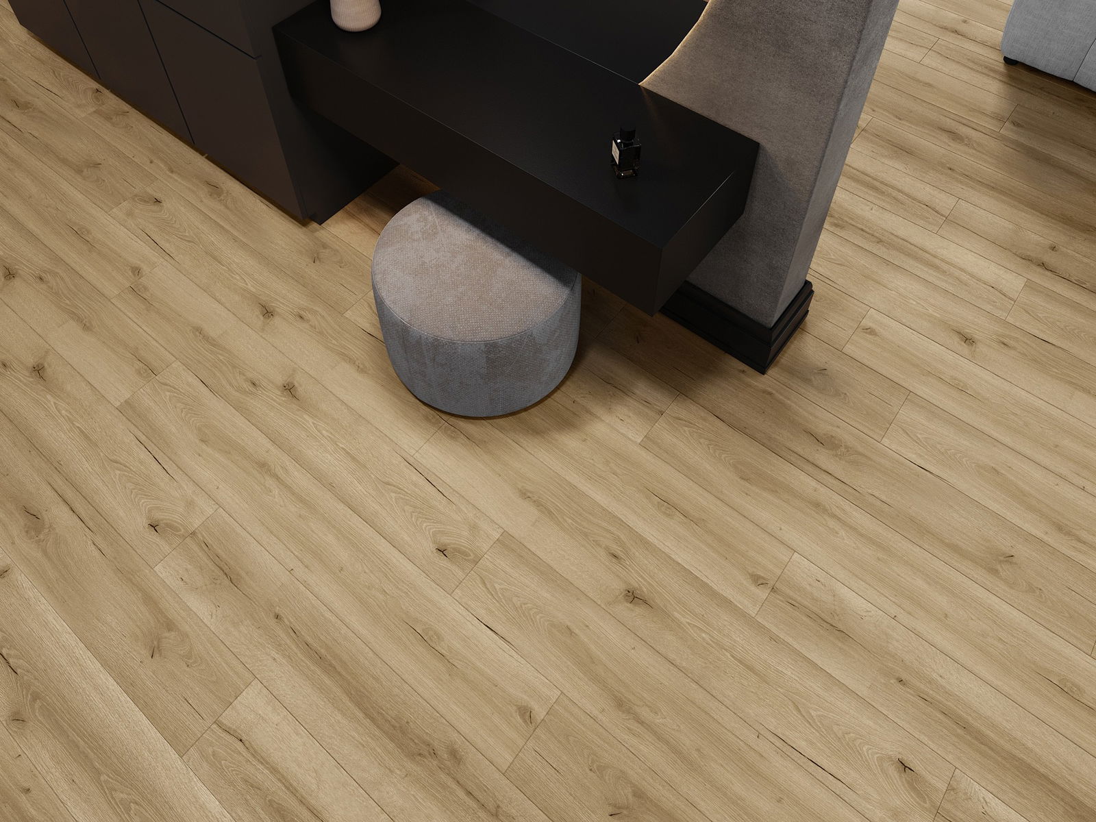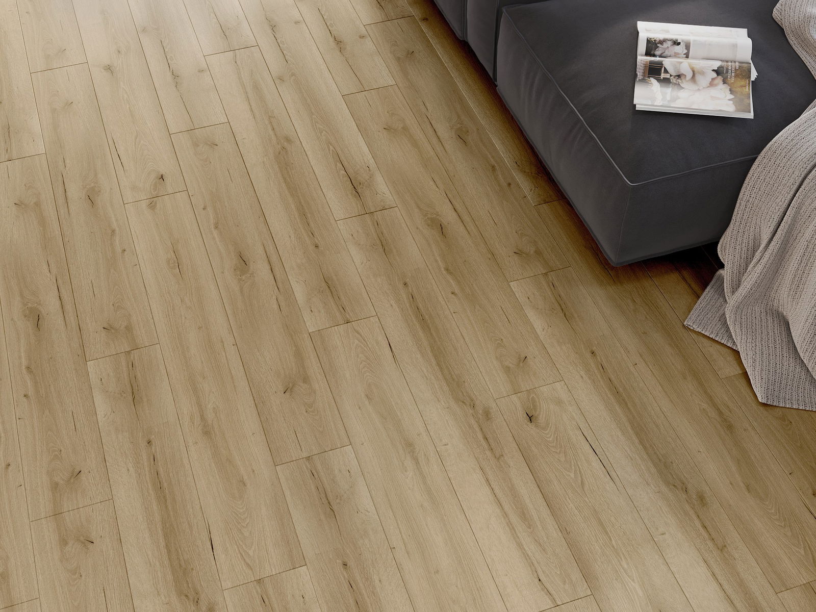 De panelen hebben een 4-zijdige voeg - elke zijde is zo gefreesd dat er bij het leggen een V-vormige verbinding ontstaat. Dit design geeft de vloer een duidelijkere structuur, waardoor het diepte en een esthetisch karakter krijgt. Dit effect wordt vooral gewaardeerd in moderne interieurs, waar details de unieke uitstraling van het interieur benadrukken.