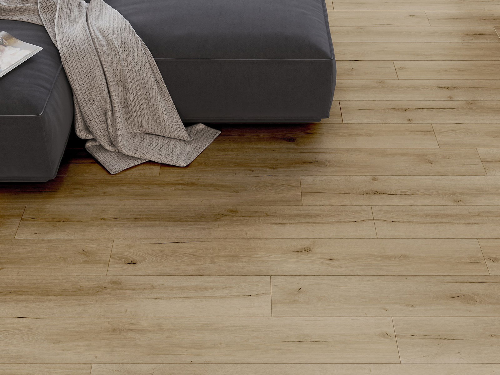 De panelen hebben een 4-zijdige voeg - elke zijde is zo gefreesd dat er bij het leggen een V-vormige verbinding ontstaat. Dit design geeft de vloer een duidelijkere structuur, waardoor het diepte en een esthetisch karakter krijgt. Dit effect wordt vooral gewaardeerd in moderne interieurs, waar details de unieke uitstraling van het interieur benadrukken.