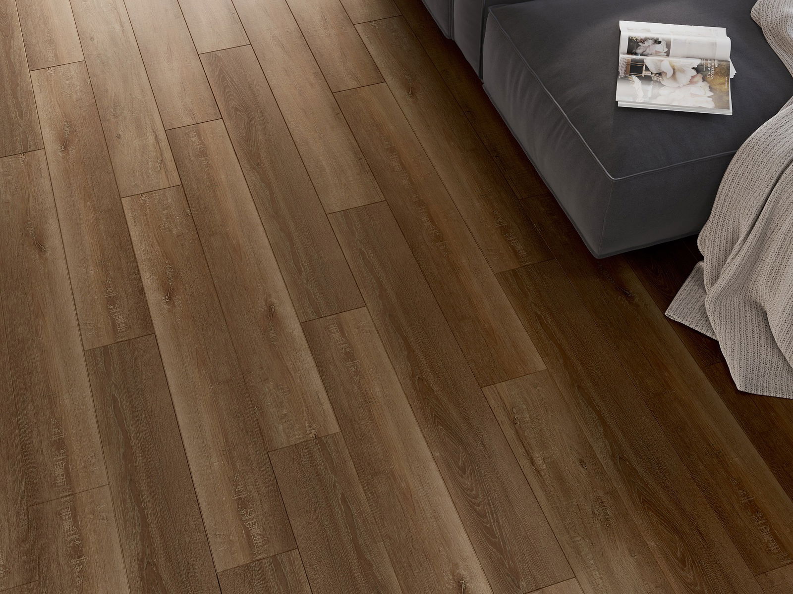 De panelen hebben een 4-zijdige voeg - elke zijde is zo gefreesd dat er bij het leggen een V-vormige verbinding ontstaat. Dit design geeft de vloer een duidelijkere structuur, waardoor het diepte en een esthetisch karakter krijgt. Dit effect wordt vooral gewaardeerd in moderne interieurs, waar details de unieke uitstraling van het interieur benadrukken.