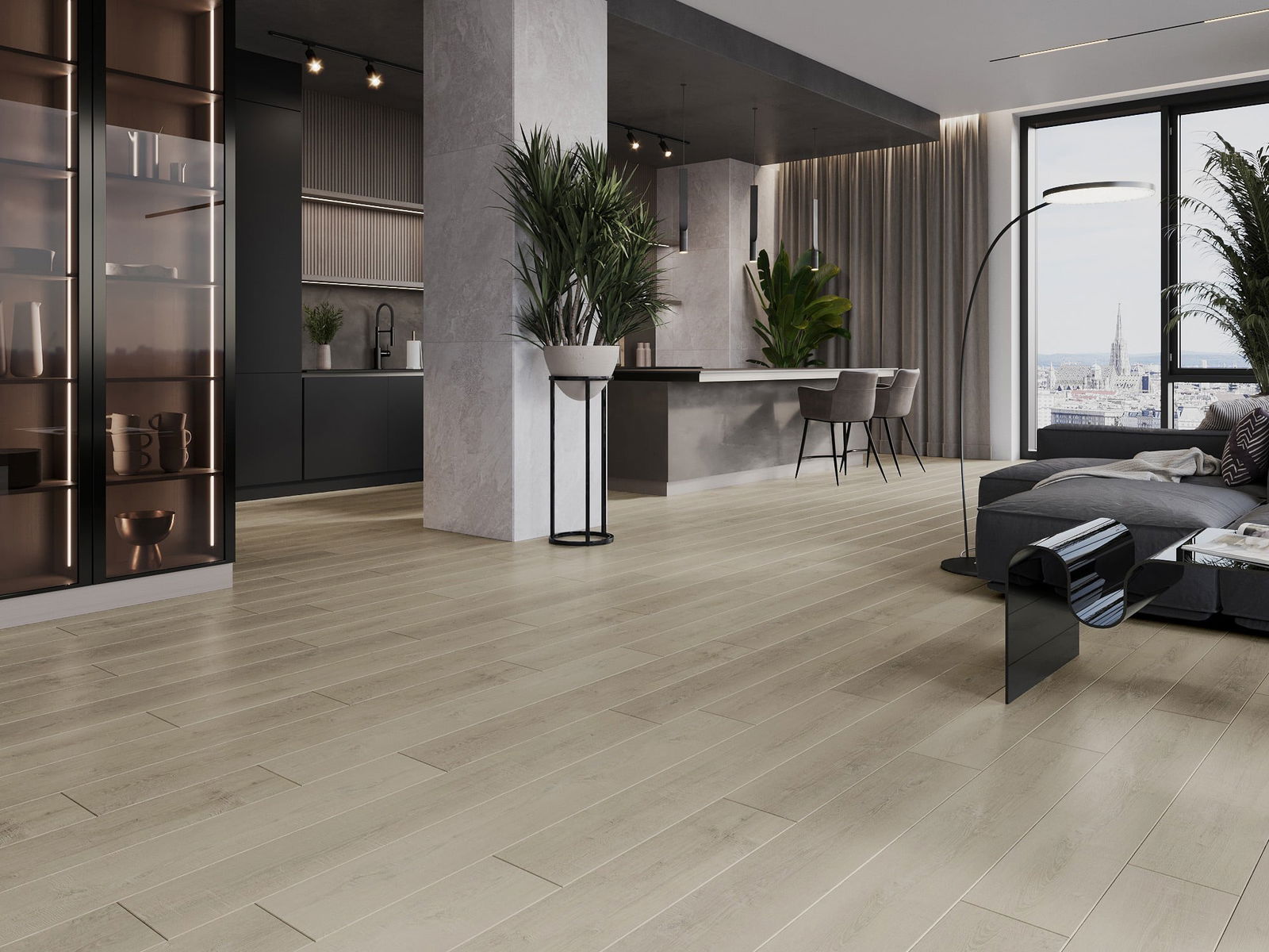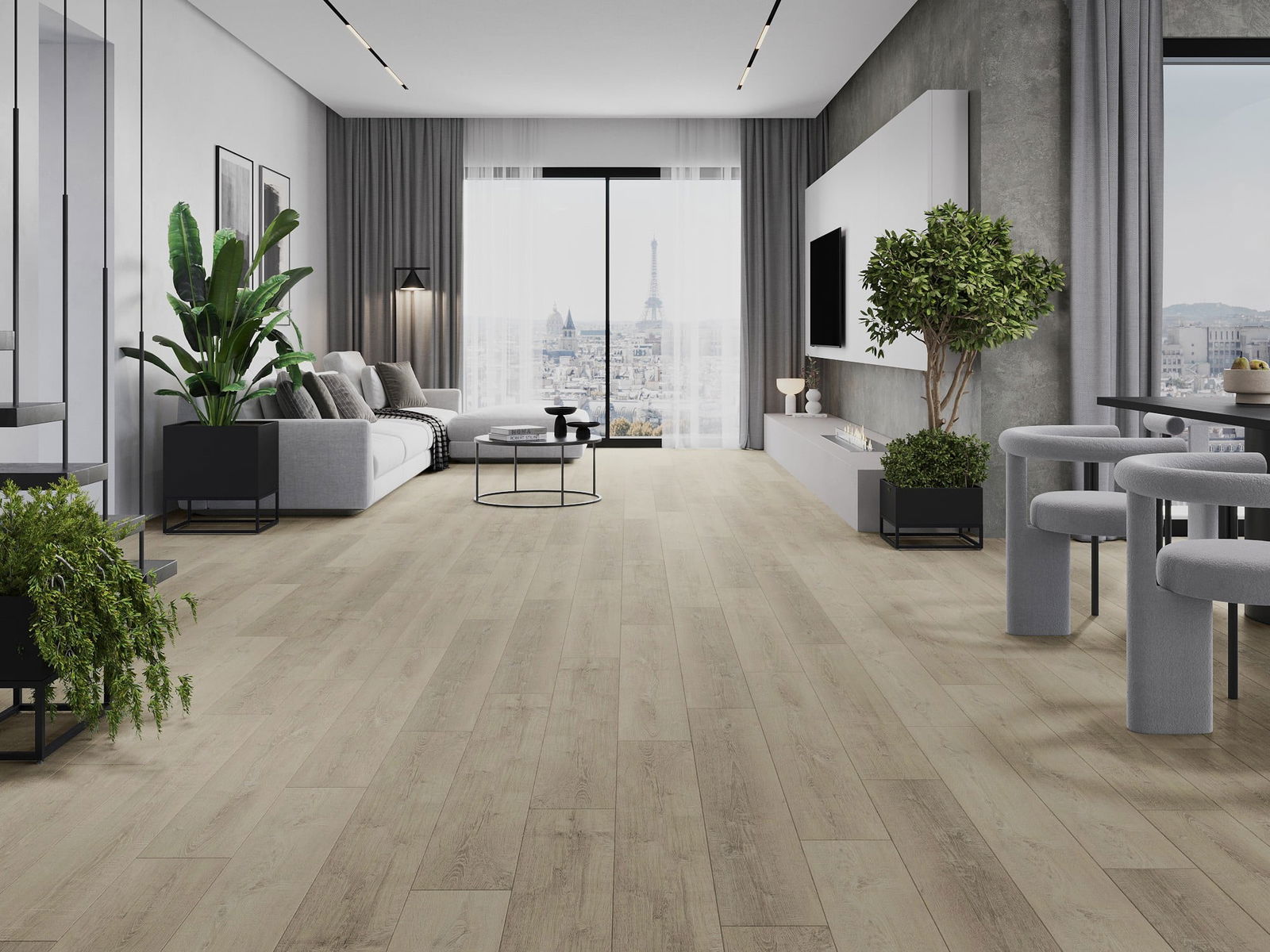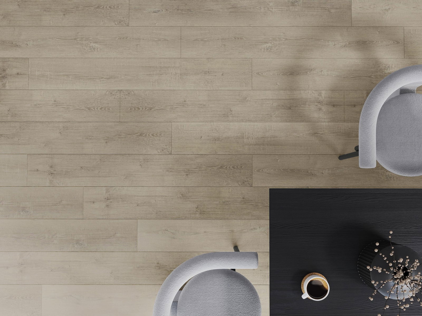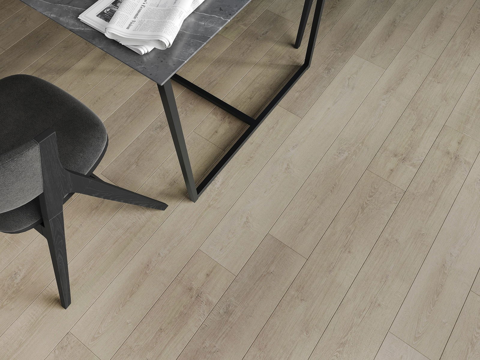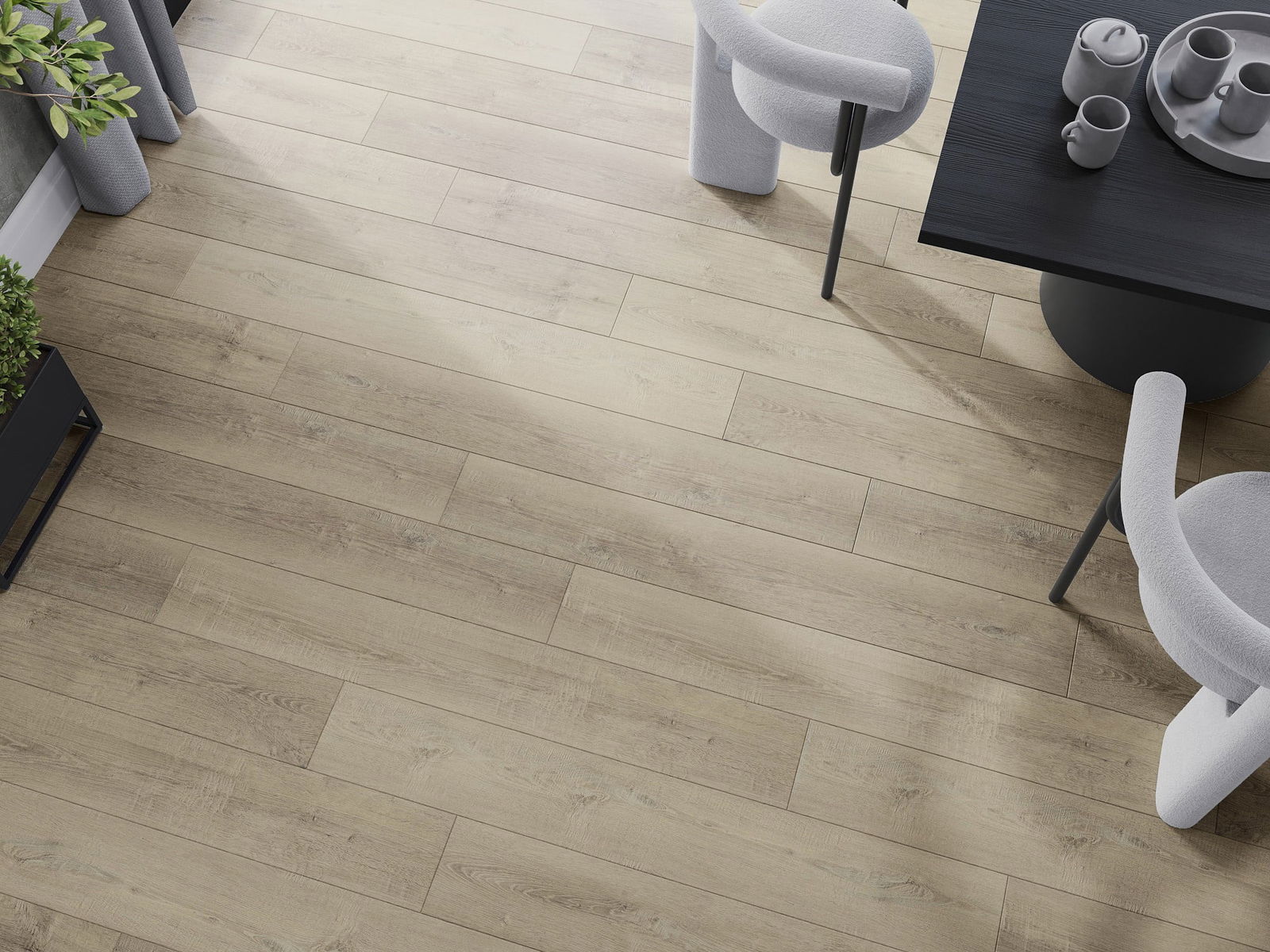 De panelen hebben een 4-zijdige voeg - elke zijde is zo gefreesd dat er bij het leggen een V-vormige verbinding ontstaat. Dit design geeft de vloer een duidelijkere structuur, waardoor het diepte en een esthetisch karakter krijgt. Dit effect wordt vooral gewaardeerd in moderne interieurs, waar details de unieke uitstraling van het interieur benadrukken.