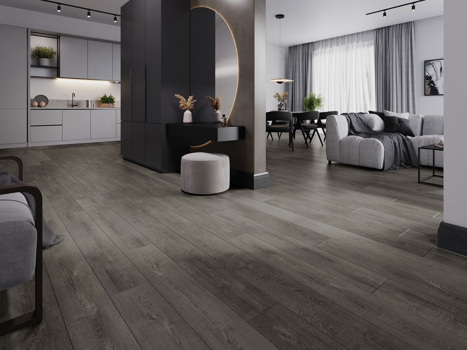 De panelen hebben een 4-zijdige voeg - elke zijde is zo gefreesd dat er bij het leggen een V-vormige verbinding ontstaat. Dit design geeft de vloer een duidelijkere structuur, waardoor het diepte en een esthetisch karakter krijgt. Dit effect wordt vooral gewaardeerd in moderne interieurs, waar details de unieke uitstraling van het interieur benadrukken.
