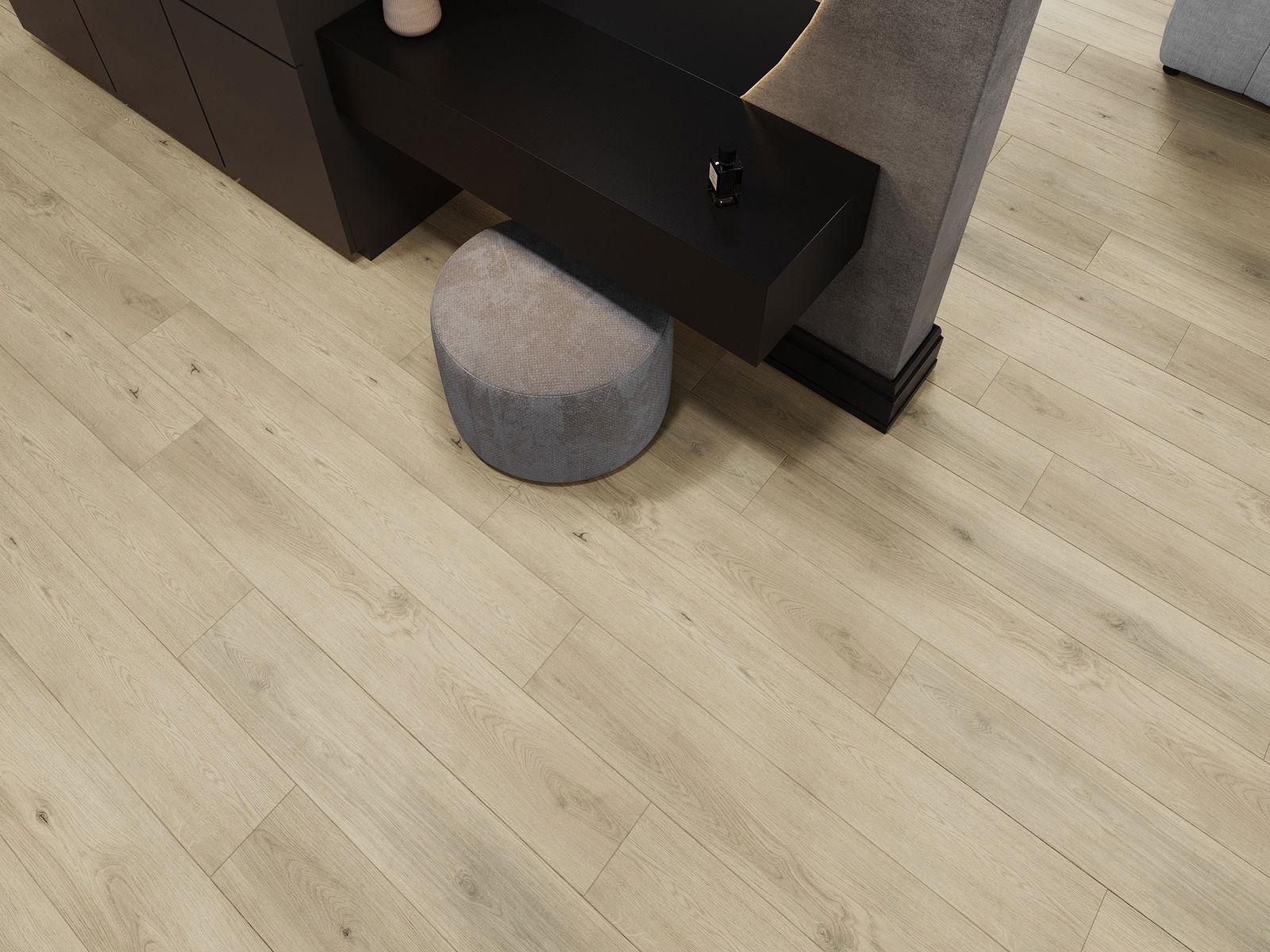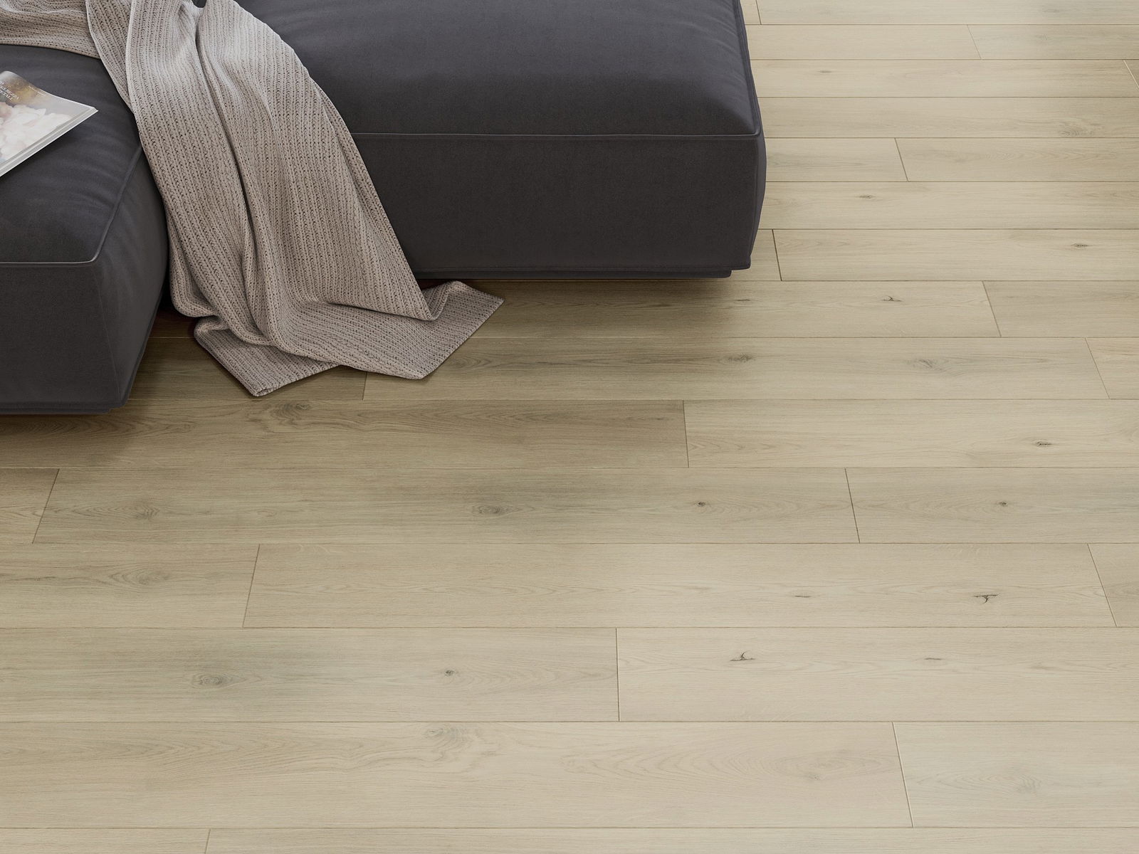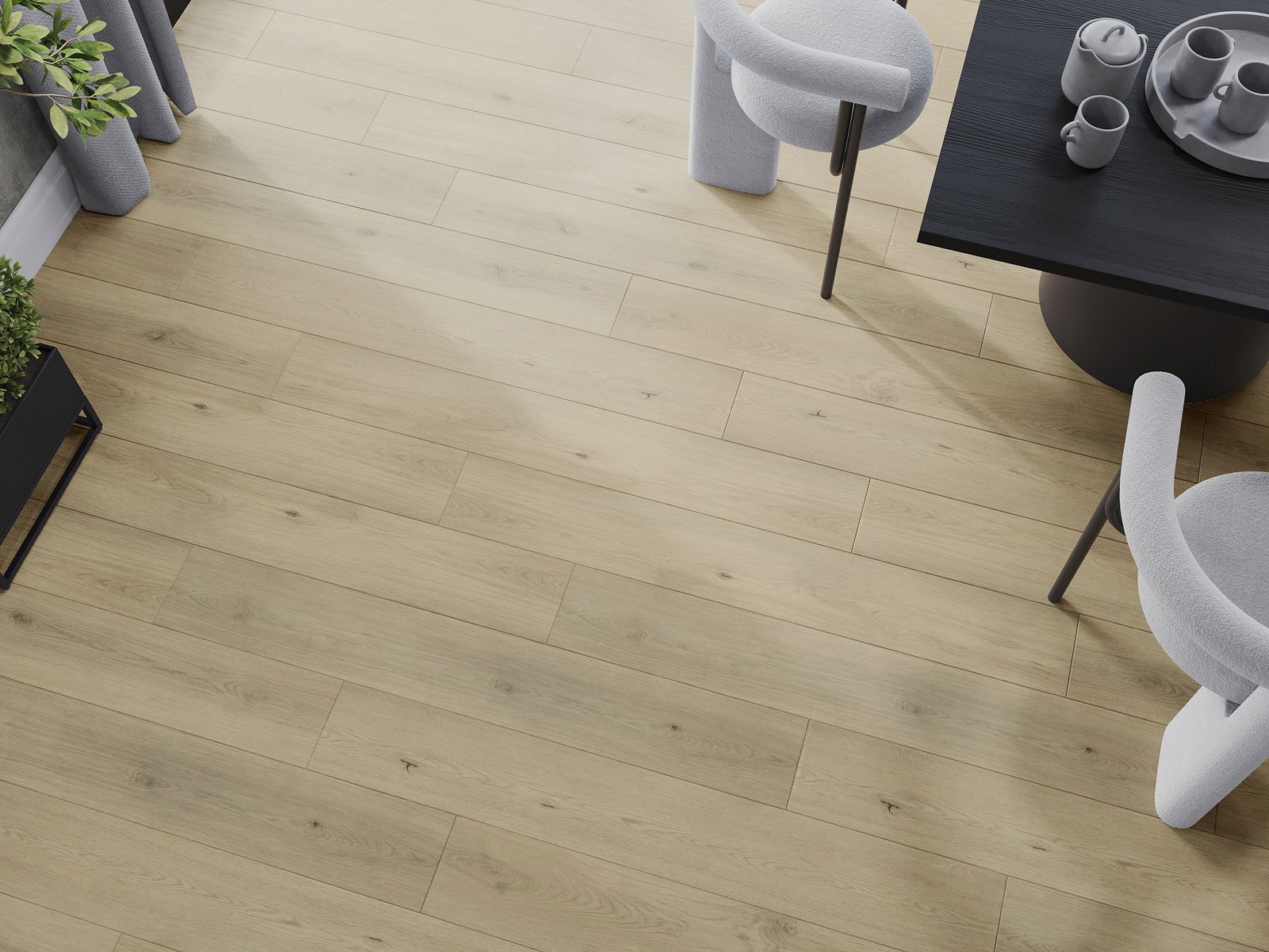 De panelen hebben een 4-zijdige voeg - elke zijde is zo gefreesd dat er bij het leggen een V-vormige verbinding ontstaat. Dit design geeft de vloer een duidelijkere structuur, waardoor het diepte en een esthetisch karakter krijgt. Dit effect wordt vooral gewaardeerd in moderne interieurs, waar details de unieke uitstraling van het interieur benadrukken.