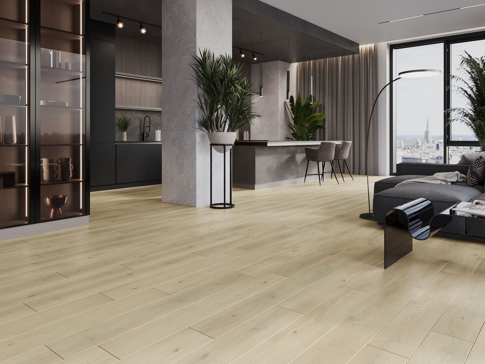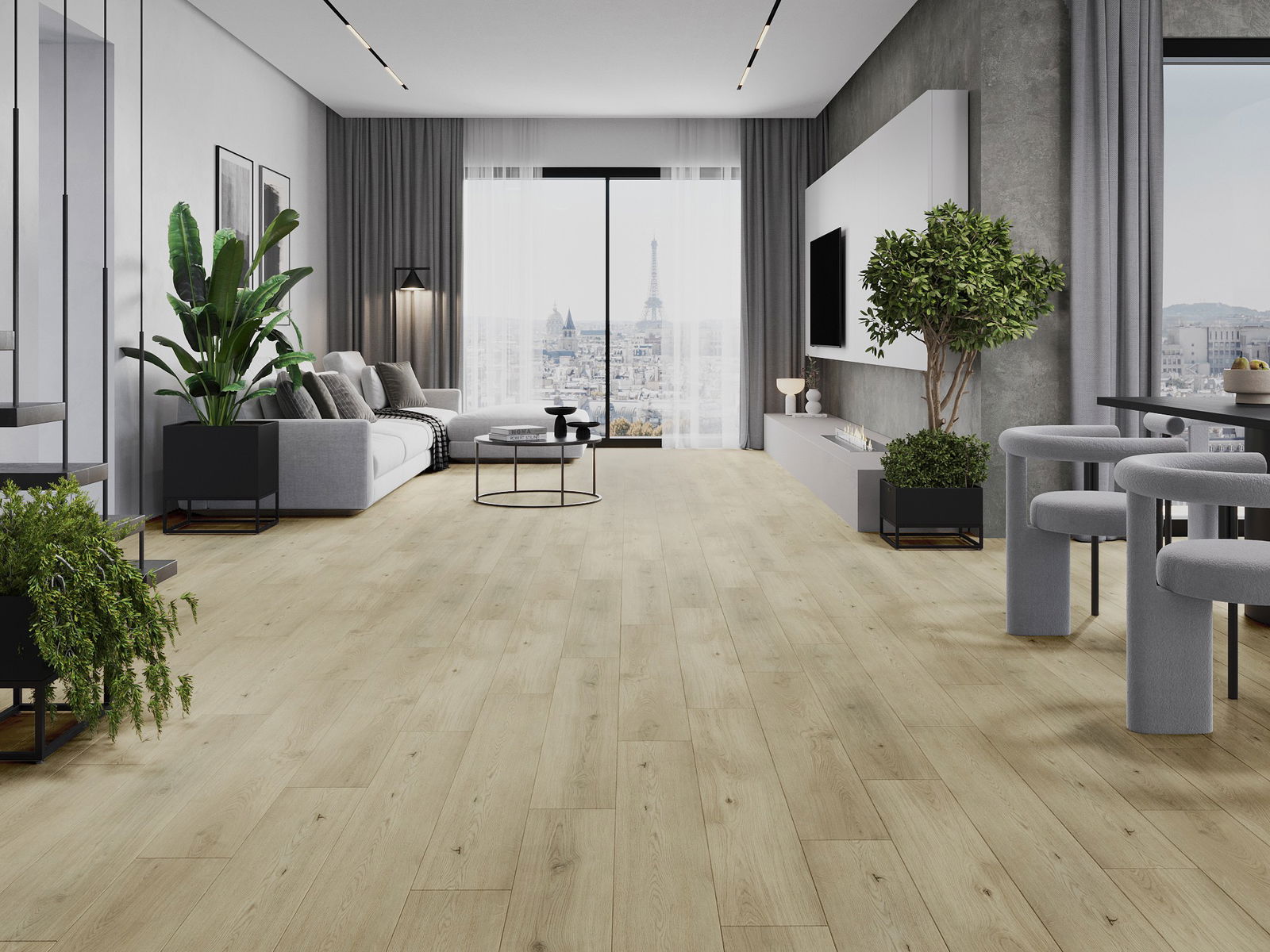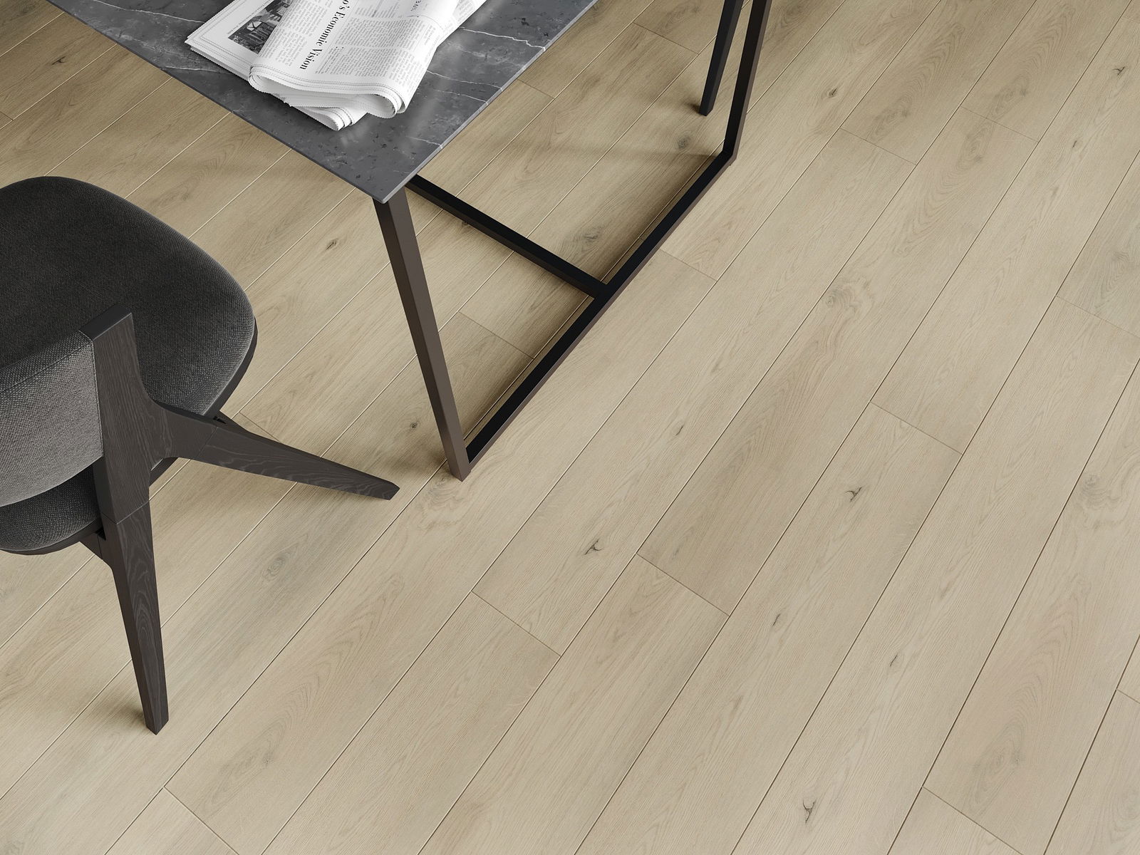 De panelen hebben een 4-zijdige voeg - elke zijde is zo gefreesd dat er bij het leggen een V-vormige verbinding ontstaat. Dit design geeft de vloer een duidelijkere structuur, waardoor het diepte en een esthetisch karakter krijgt. Dit effect wordt vooral gewaardeerd in moderne interieurs, waar details de unieke uitstraling van het interieur benadrukken.