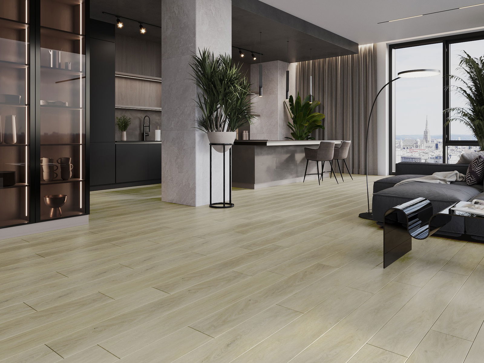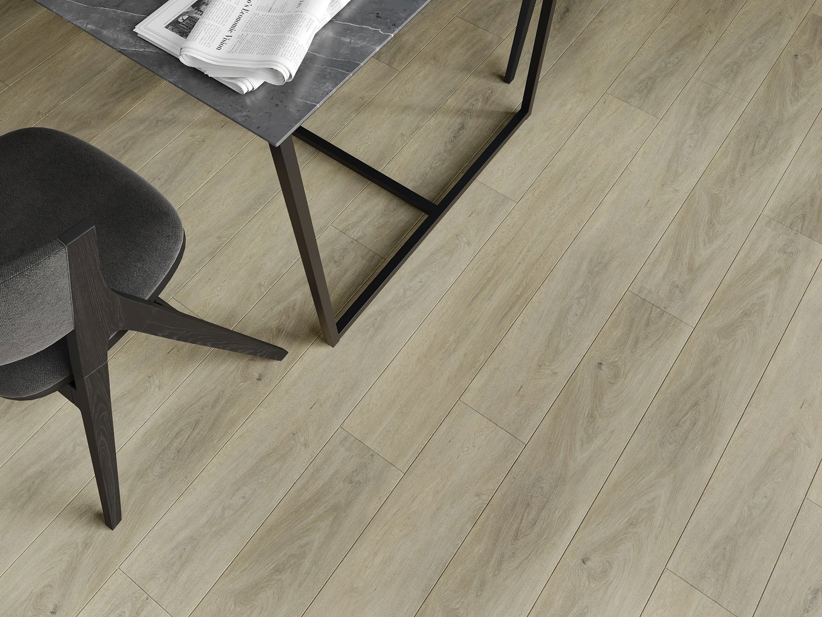 De panelen hebben een 4-zijdige voeg - elke zijde is zo gefreesd dat er bij het leggen een V-vormige verbinding ontstaat. Dit design geeft de vloer een duidelijkere structuur, waardoor het diepte en een esthetisch karakter krijgt. Dit effect wordt vooral gewaardeerd in moderne interieurs, waar details de unieke uitstraling van het interieur benadrukken.
