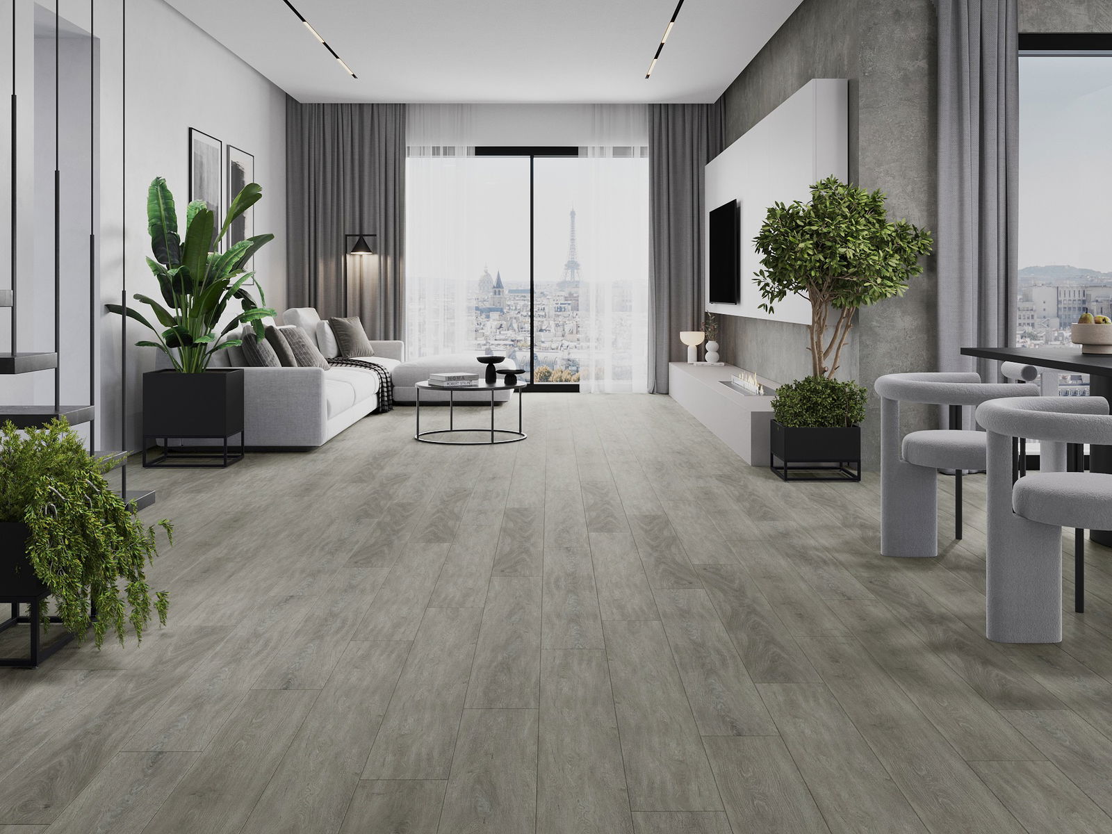 De panelen hebben een 4-zijdige voeg - elke zijde is zo gefreesd dat er bij het leggen een V-vormige verbinding ontstaat. Dit design geeft de vloer een duidelijkere structuur, waardoor het diepte en een esthetisch karakter krijgt. Dit effect wordt vooral gewaardeerd in moderne interieurs, waar details de unieke uitstraling van het interieur benadrukken.