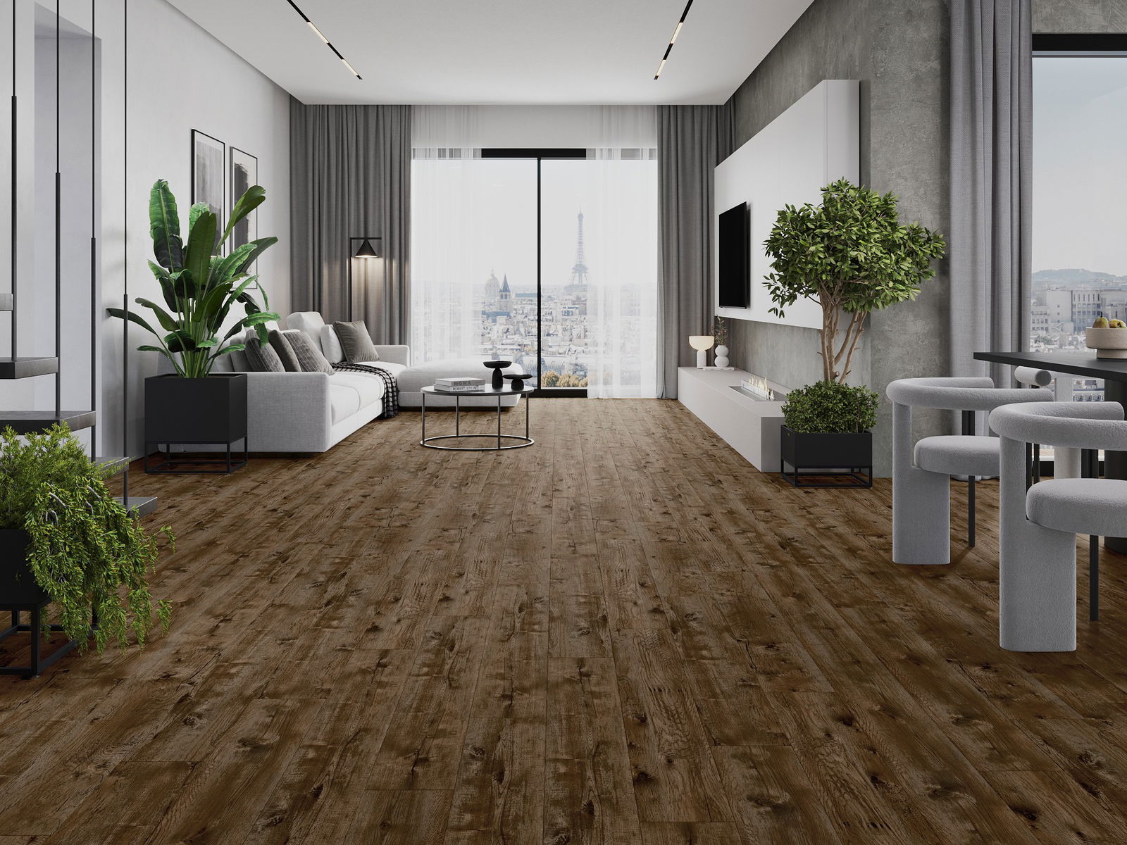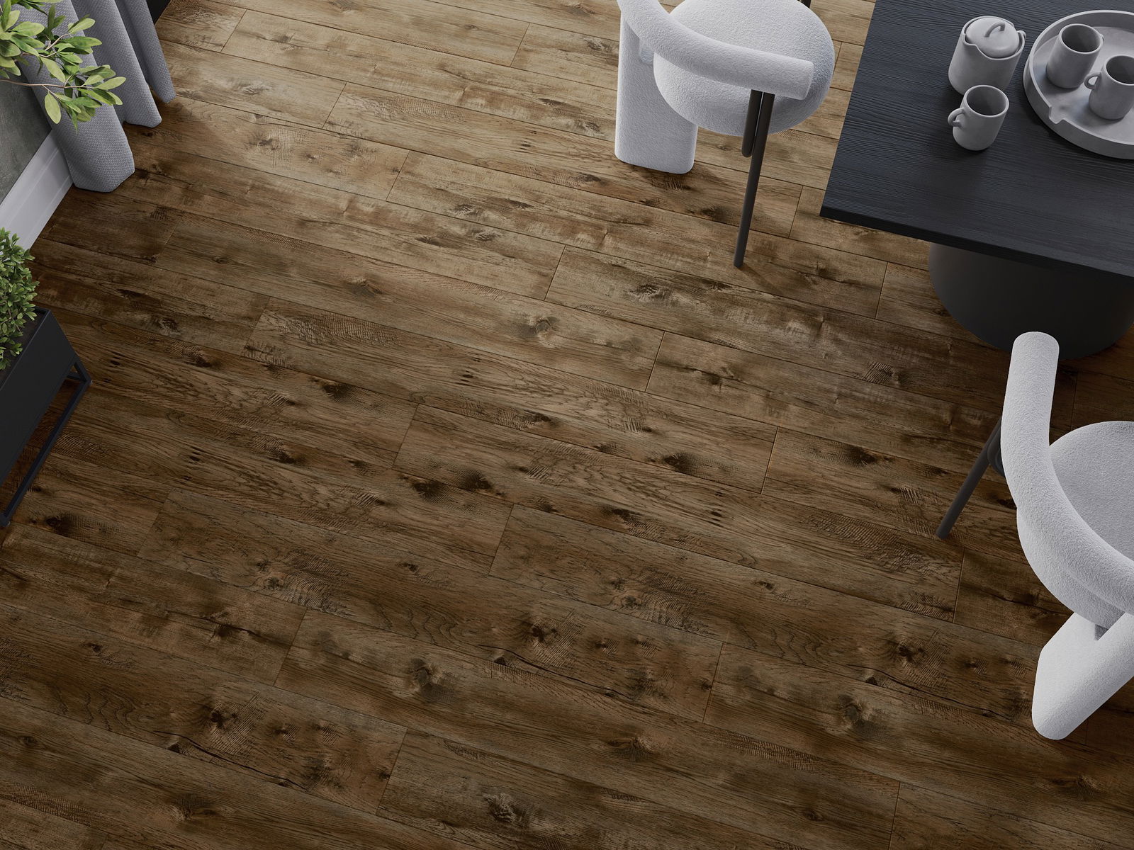 De panelen hebben een 4-zijdige voeg - elke zijde is zo gefreesd dat er bij het leggen een V-vormige verbinding ontstaat. Dit design geeft de vloer een duidelijkere structuur, waardoor het diepte en een esthetisch karakter krijgt. Dit effect wordt vooral gewaardeerd in moderne interieurs, waar details de unieke uitstraling van het interieur benadrukken.
