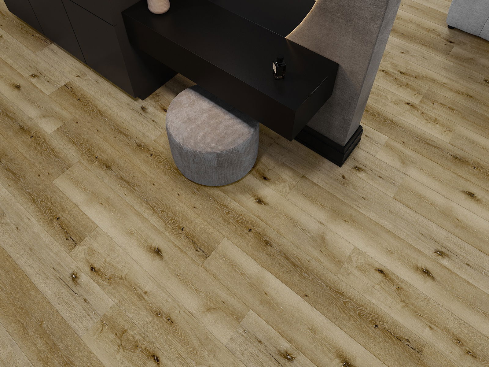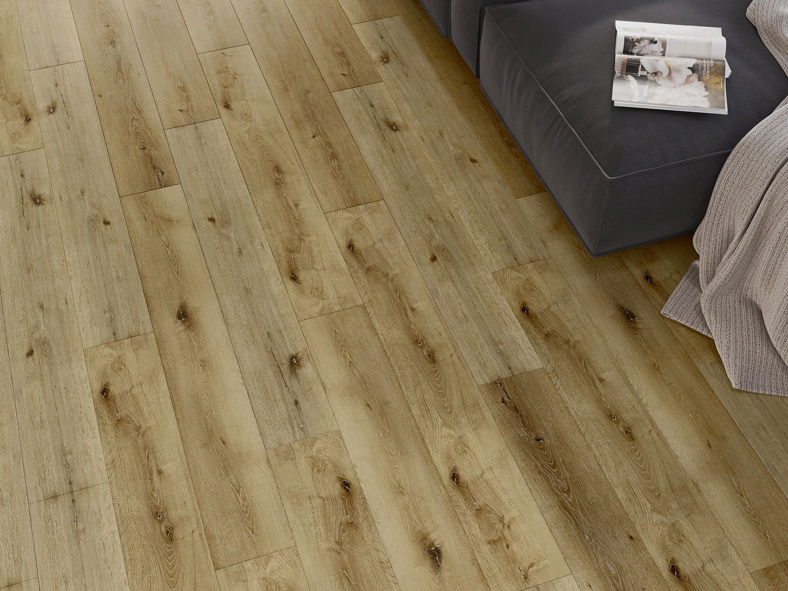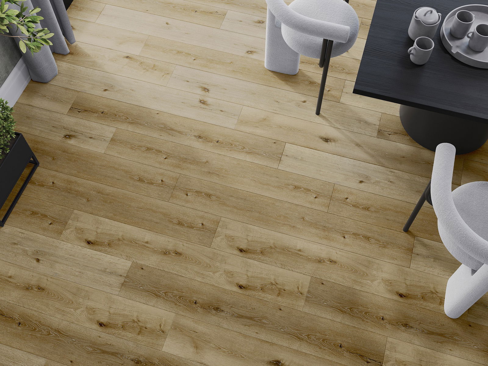 De panelen hebben een 4-zijdige voeg - elke zijde is zo gefreesd dat er bij het leggen een V-vormige verbinding ontstaat. Dit design geeft de vloer een duidelijkere structuur, waardoor het diepte en een esthetisch karakter krijgt. Dit effect wordt vooral gewaardeerd in moderne interieurs, waar details de unieke uitstraling van het interieur benadrukken.
