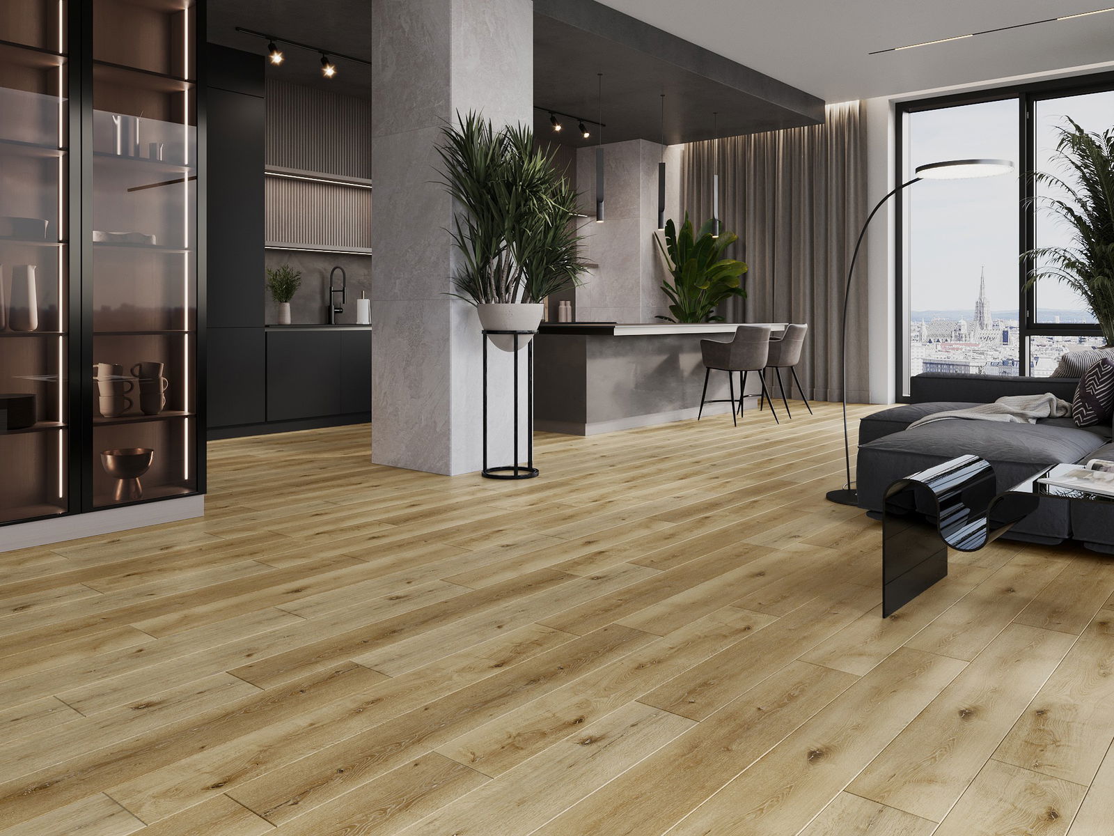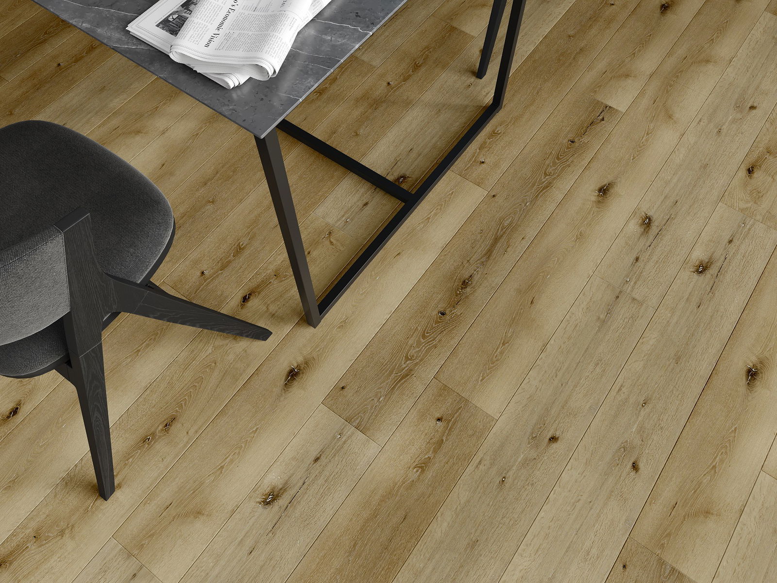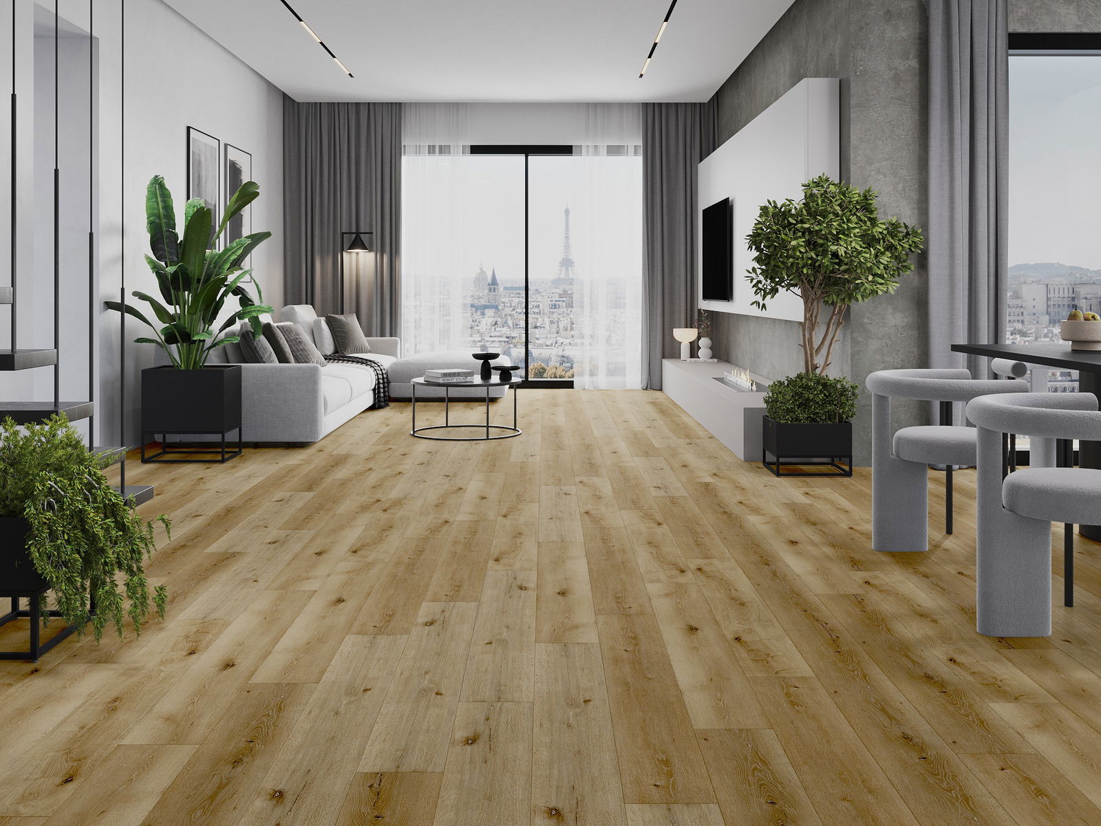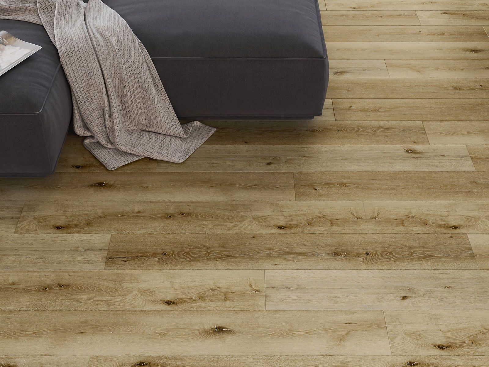 De panelen hebben een 4-zijdige voeg - elke zijde is zo gefreesd dat er bij het leggen een V-vormige verbinding ontstaat. Dit design geeft de vloer een duidelijkere structuur, waardoor het diepte en een esthetisch karakter krijgt. Dit effect wordt vooral gewaardeerd in moderne interieurs, waar details de unieke uitstraling van het interieur benadrukken.