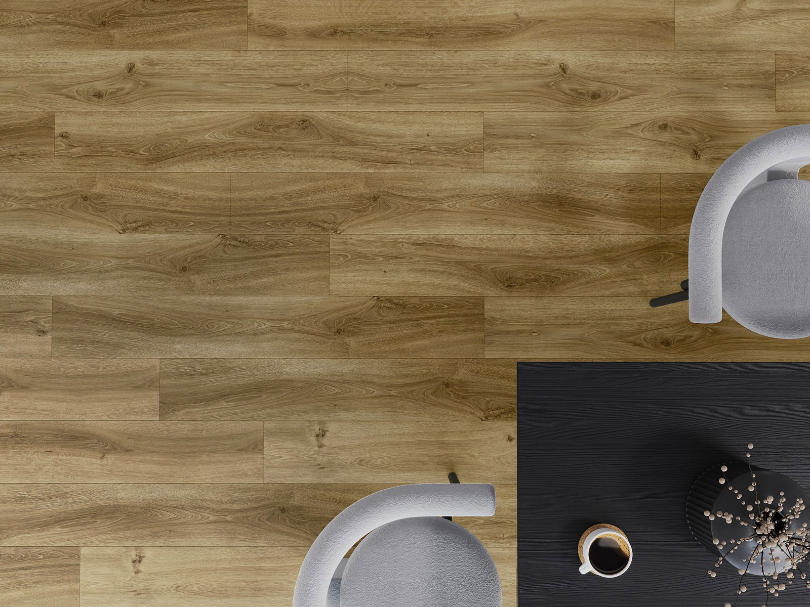 De panelen hebben een 4-zijdige voeg - elke zijde is zo gefreesd dat er bij het leggen een V-vormige verbinding ontstaat. Dit design geeft de vloer een duidelijkere structuur, waardoor het diepte en een esthetisch karakter krijgt. Dit effect wordt vooral gewaardeerd in moderne interieurs, waar details de unieke uitstraling van het interieur benadrukken.