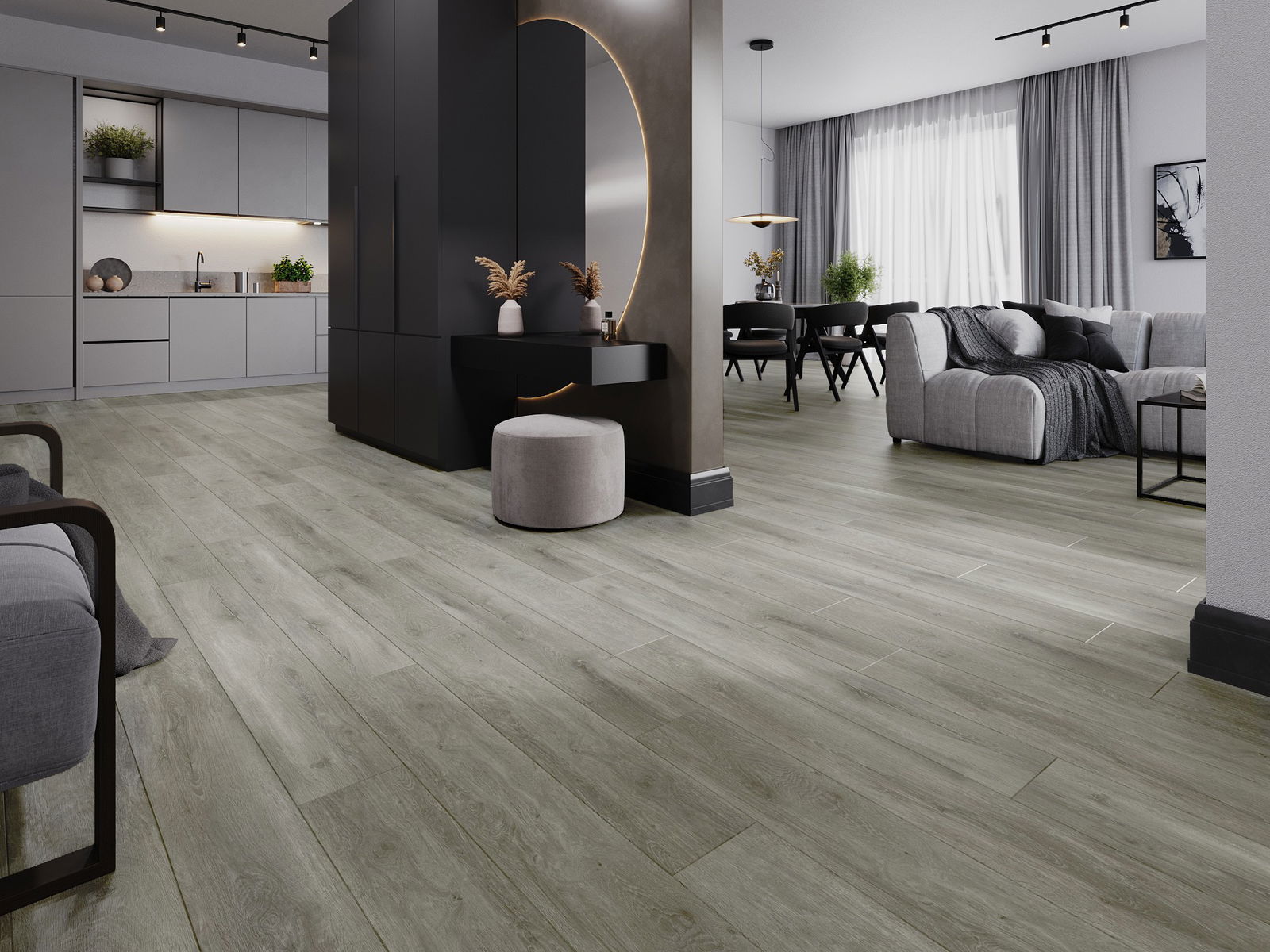 De panelen hebben een 4-zijdige voeg - elke zijde is zo gefreesd dat er bij het leggen een V-vormige verbinding ontstaat. Dit design geeft de vloer een duidelijkere structuur, waardoor het diepte en een esthetisch karakter krijgt. Dit effect wordt vooral gewaardeerd in moderne interieurs, waar details de unieke uitstraling van het interieur benadrukken.
