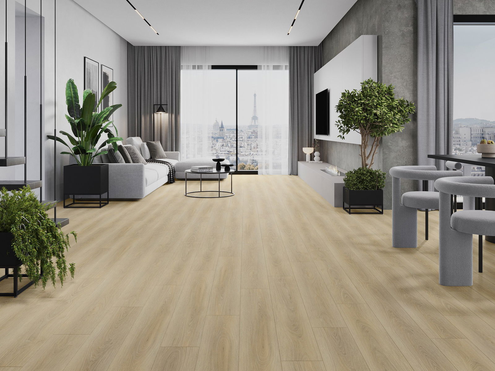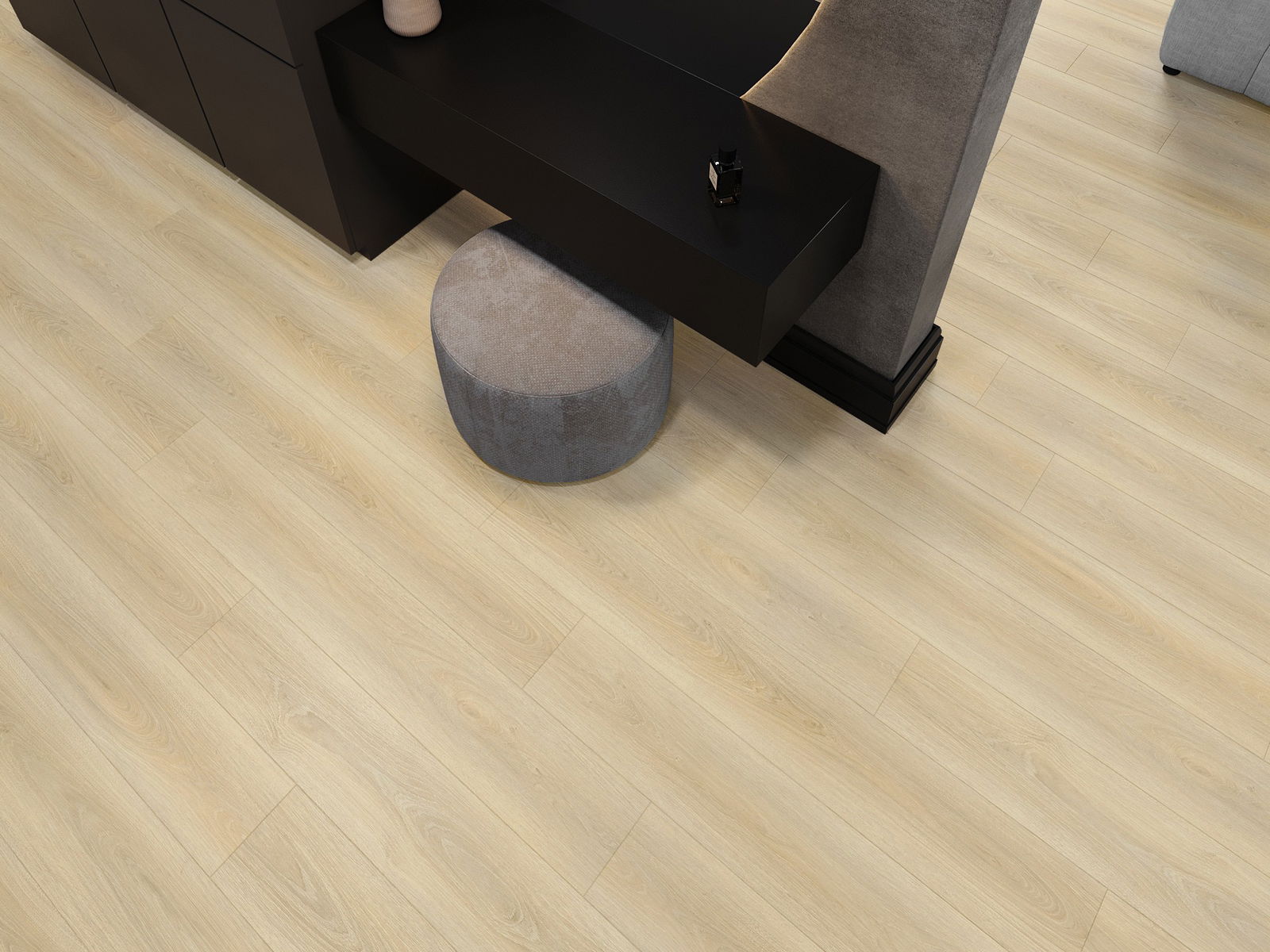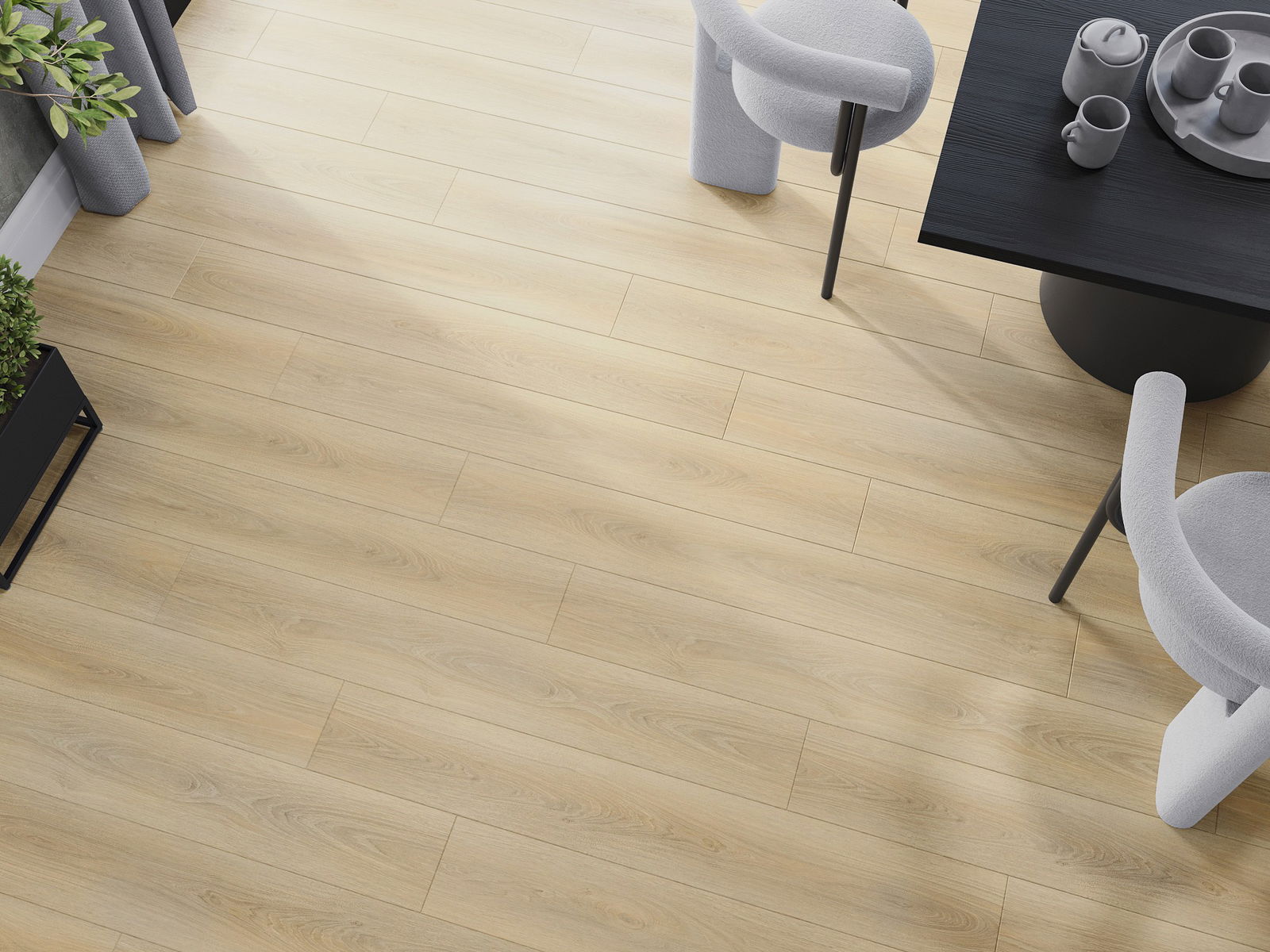 De panelen hebben een 4-zijdige voeg - elke zijde is zo gefreesd dat er bij het leggen een V-vormige verbinding ontstaat. Dit design geeft de vloer een duidelijkere structuur, waardoor het diepte en een esthetisch karakter krijgt. Dit effect wordt vooral gewaardeerd in moderne interieurs, waar details de unieke uitstraling van het interieur benadrukken.