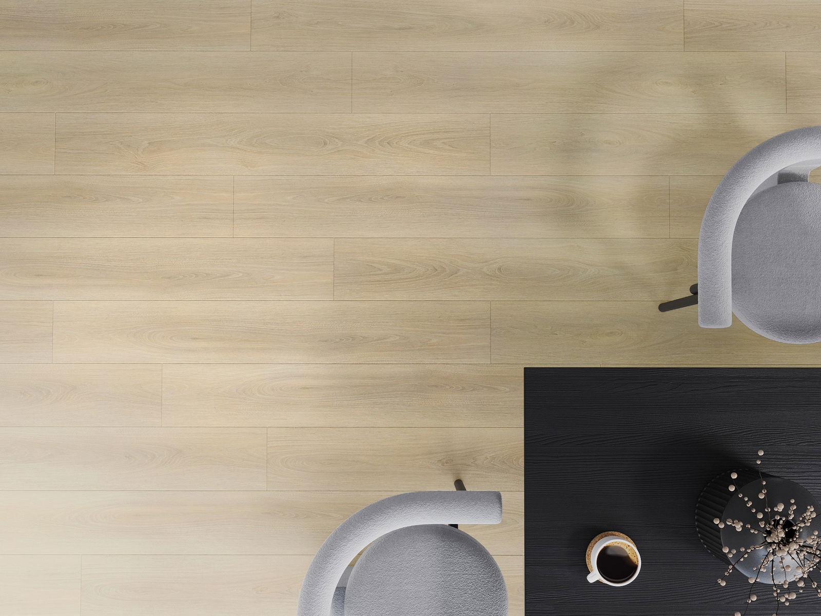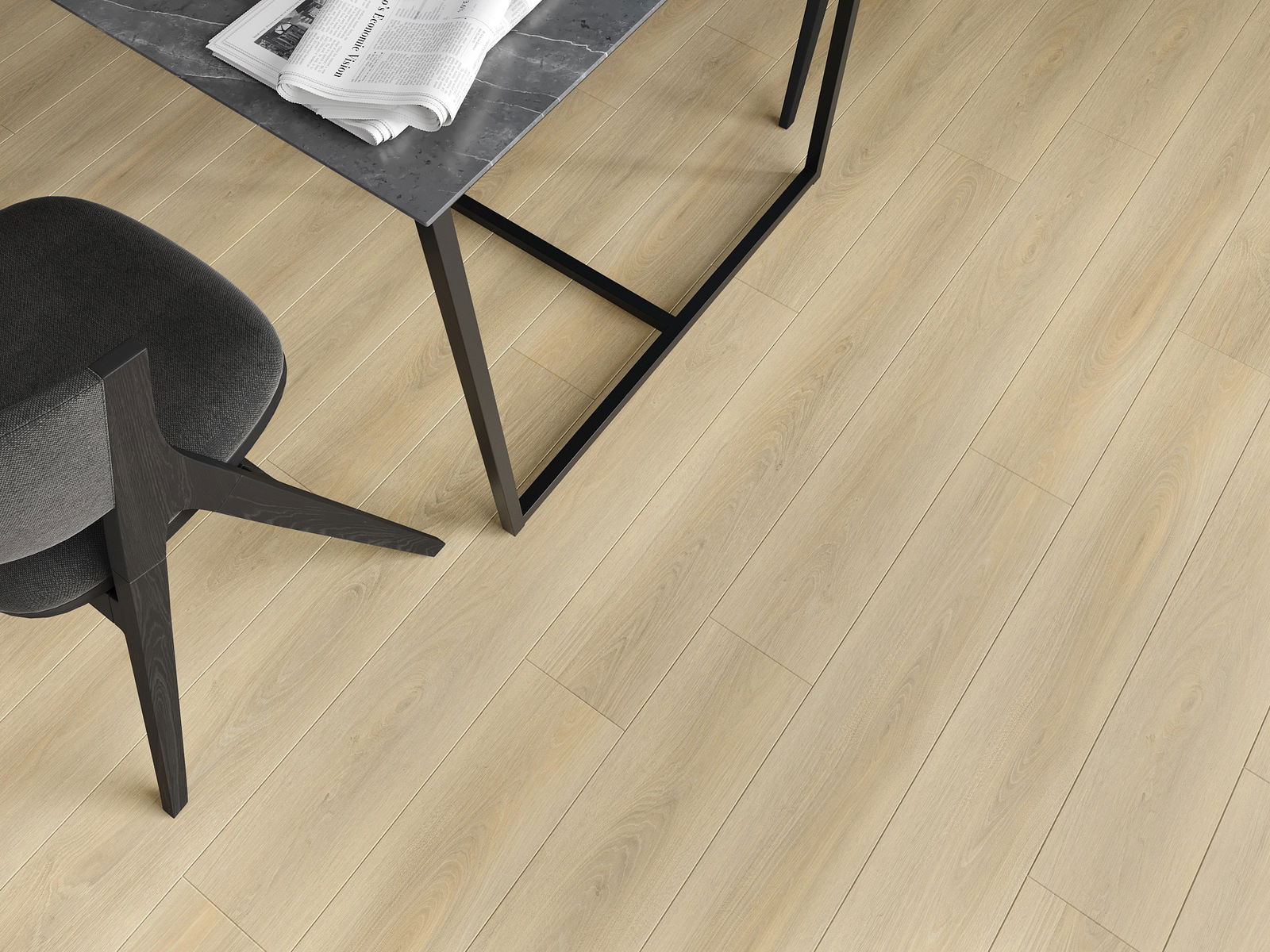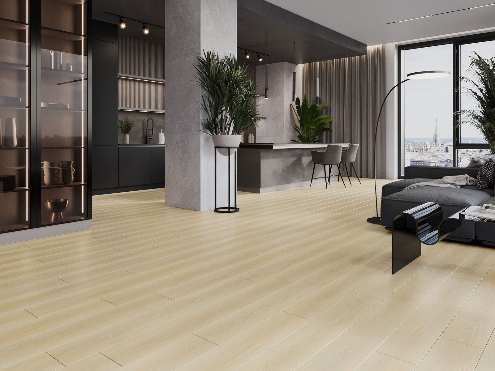 De panelen hebben een 4-zijdige voeg - elke zijde is zo gefreesd dat er bij het leggen een V-vormige verbinding ontstaat. Dit design geeft de vloer een duidelijkere structuur, waardoor het diepte en een esthetisch karakter krijgt. Dit effect wordt vooral gewaardeerd in moderne interieurs, waar details de unieke uitstraling van het interieur benadrukken.