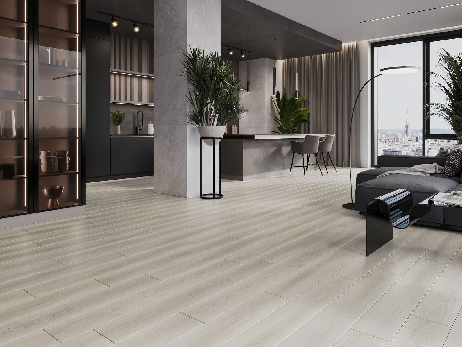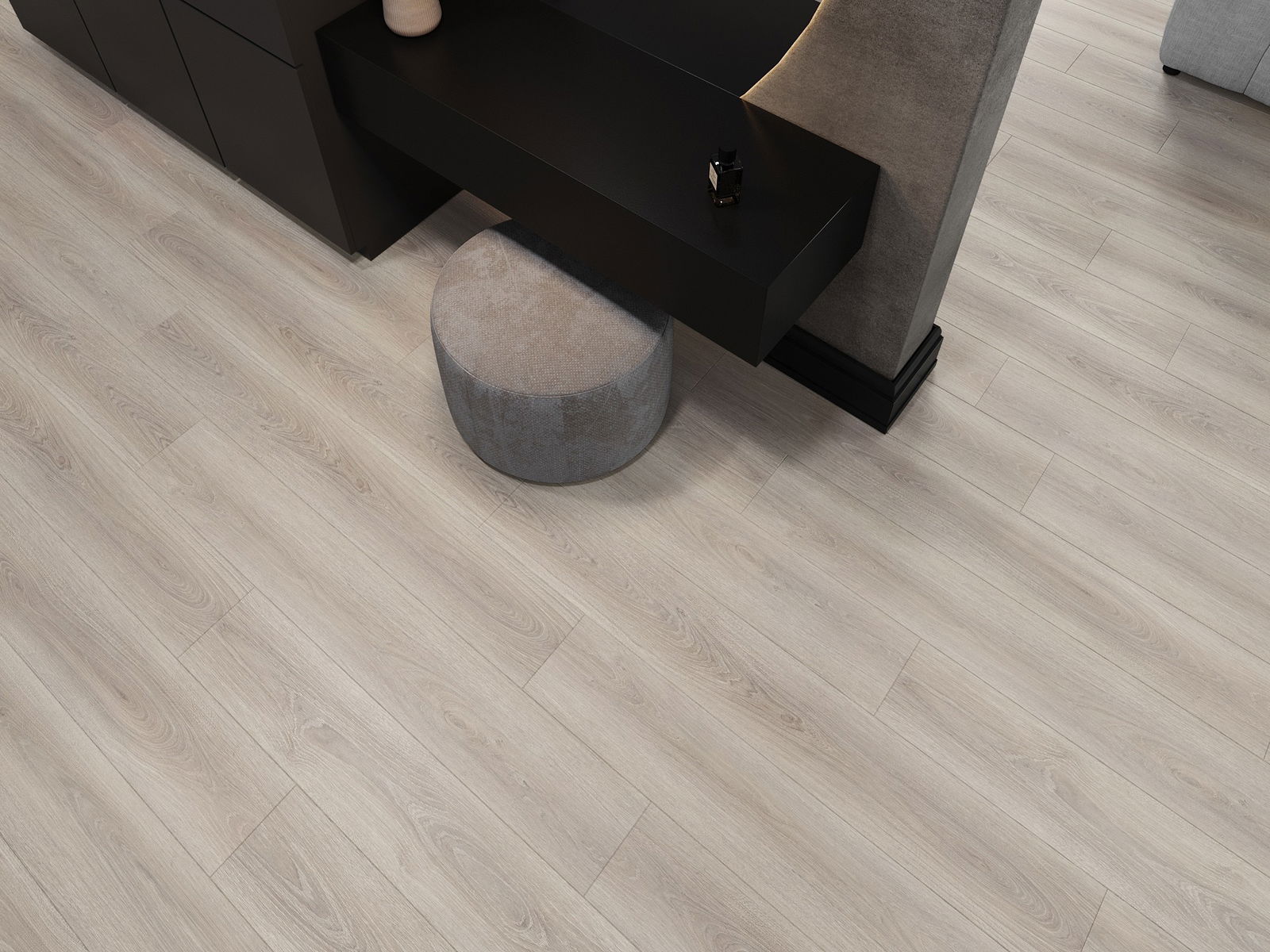 De panelen hebben een 4-zijdige voeg - elke zijde is zo gefreesd dat er bij het leggen een V-vormige verbinding ontstaat. Dit design geeft de vloer een duidelijkere structuur, waardoor het diepte en een esthetisch karakter krijgt. Dit effect wordt vooral gewaardeerd in moderne interieurs, waar details de unieke uitstraling van het interieur benadrukken.
