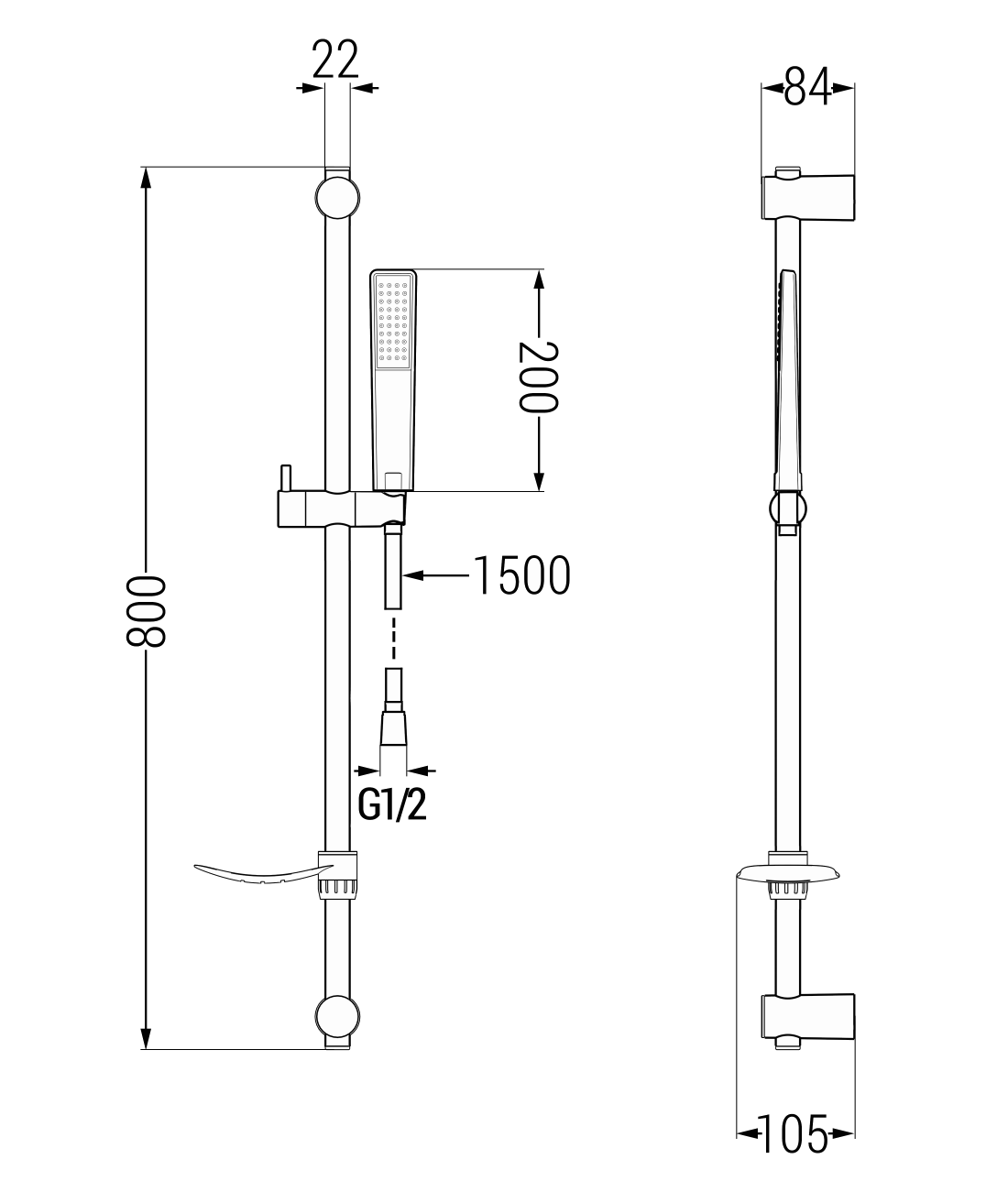 Afstand vanaf de muur: 105 mm