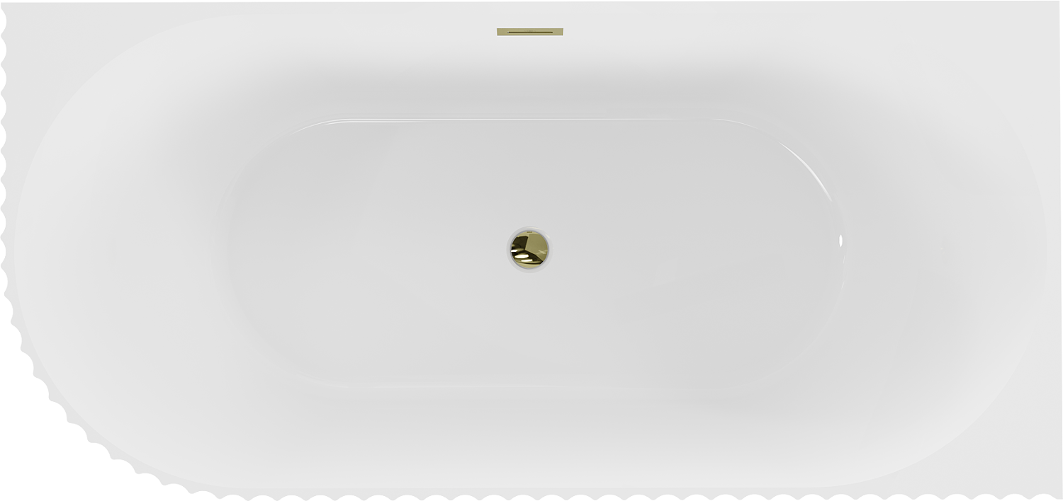 Mexen Gia vrijstaande gegolfde rechthoekige rechterkant badkuip 150 x 75 cm, wit glans, gouden overloop - 52701507500P-50
