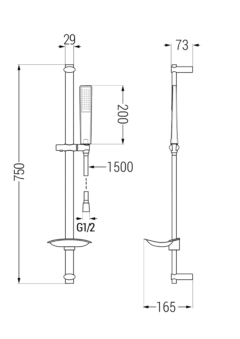 Hoogte douchekop: 200 mm