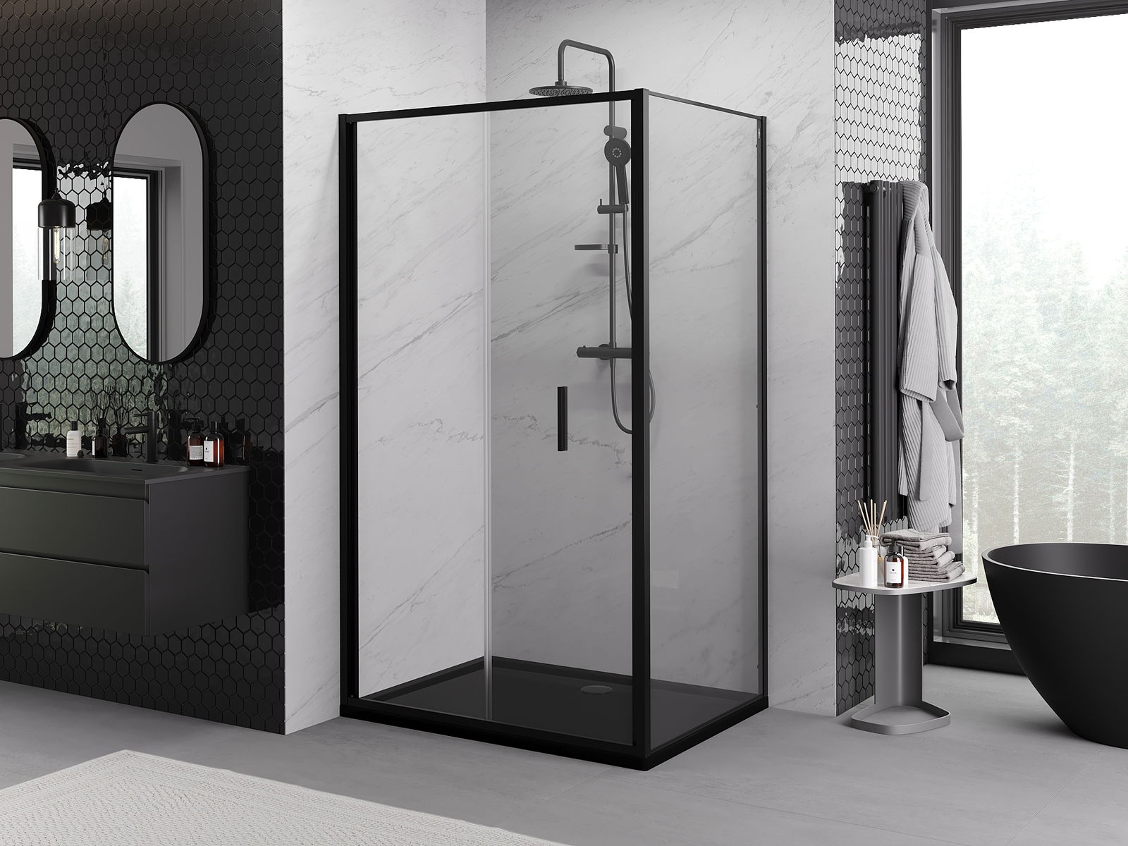 Mexen Rio vierkante douchecabine 90 x 90 cm, transparant, zwart - 860-090-090-70-00