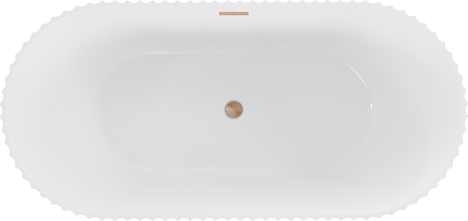 Mexen Paola vrijstaande geribbelde badkuip 170 x 80 cm, wit glans, overloop geborsteld koper - 52721708000-65