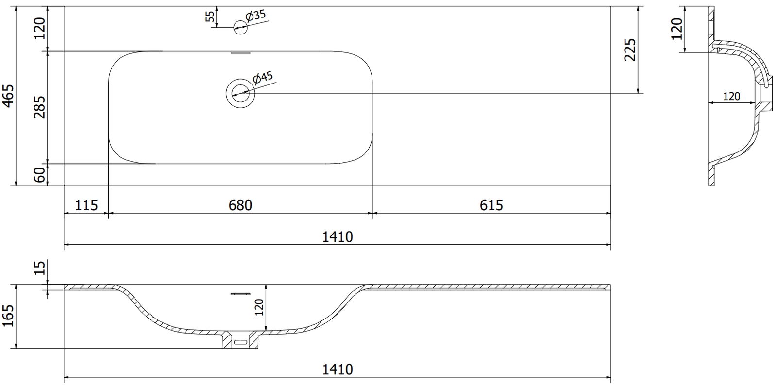 Mexen Vela ingebouwde wastafel links 141 x 46,5 cm, wit glans - 25231400L