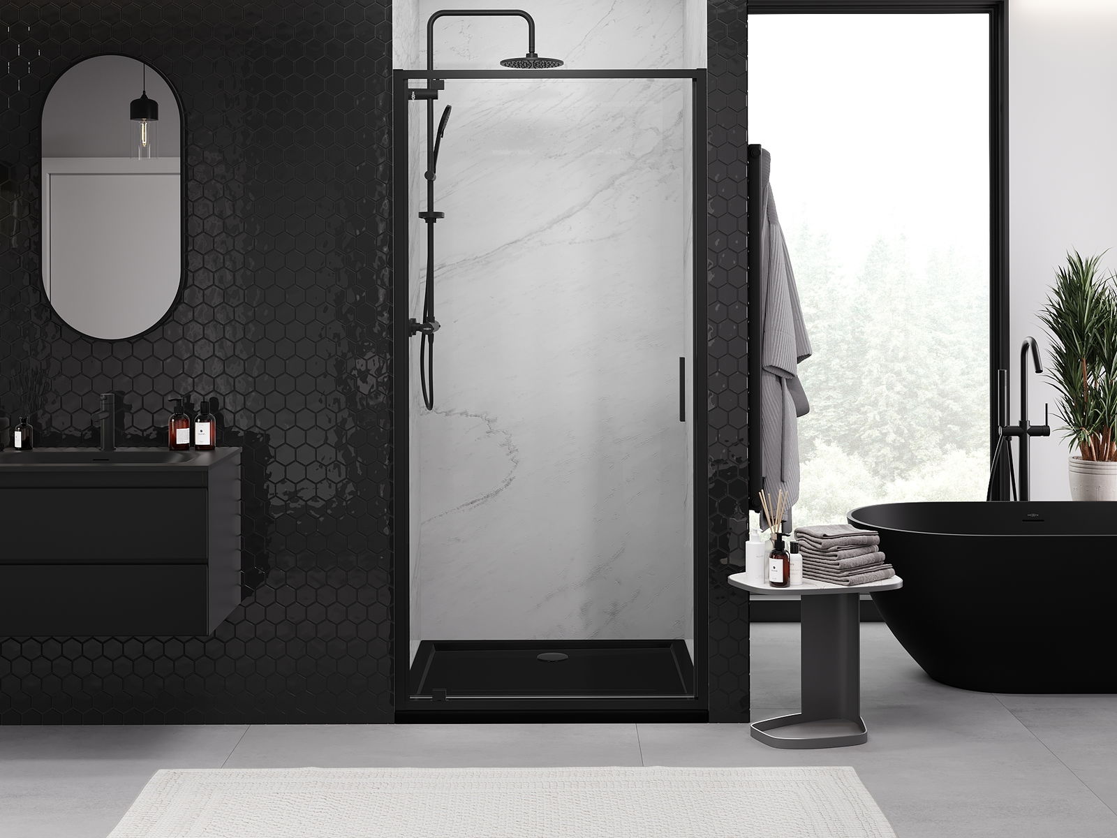 Mexen Exo draaideur douchedeur 60 cm, transparant, zwart - 8181-060-000-70-00