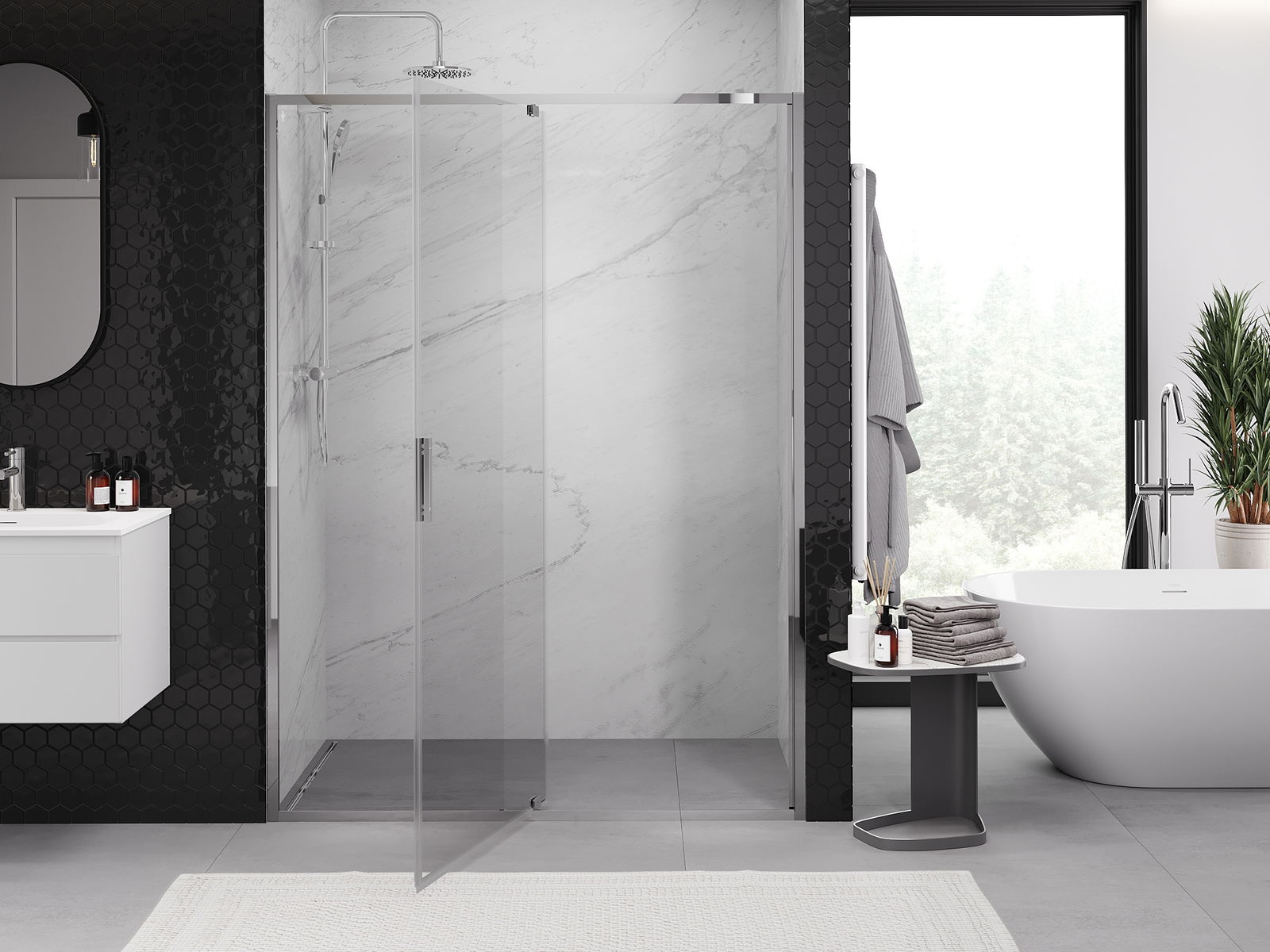 Dankzij het universele montagesysteem kan de douchedeur, afhankelijk van uw wensen, rechts of links worden gemonteerd. Zo kunt u eenvoudig een douche ontwerpen die past bij uw badkamer.