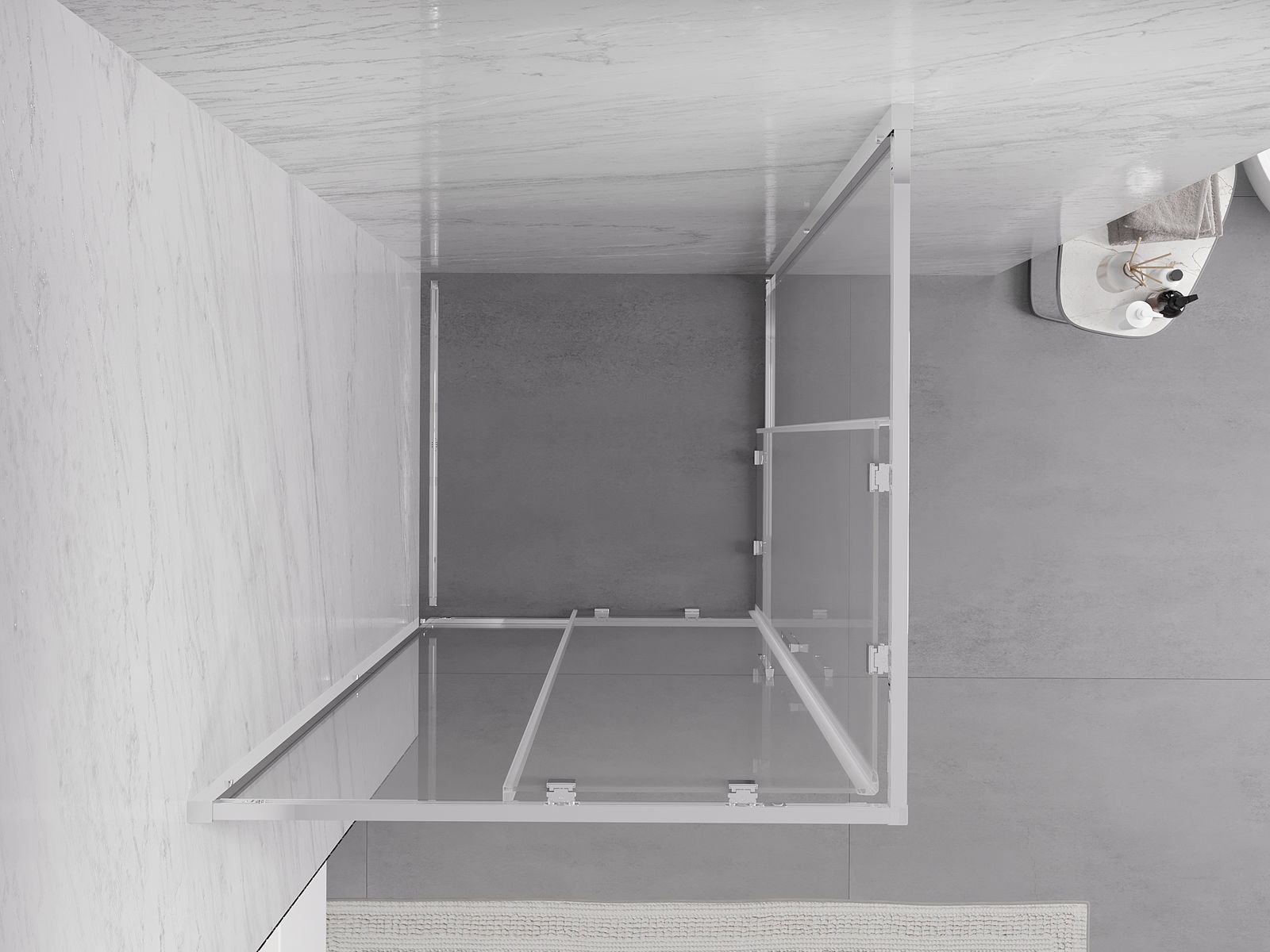 Schuifdeuren bewegen op speciale geleiders en hebben geen extra ruimte nodig om te openen, waardoor ze ideaal zijn voor kleinere badkamers. Dubbele rollen met een metalen frame zorgen voor een soepele beweging.
