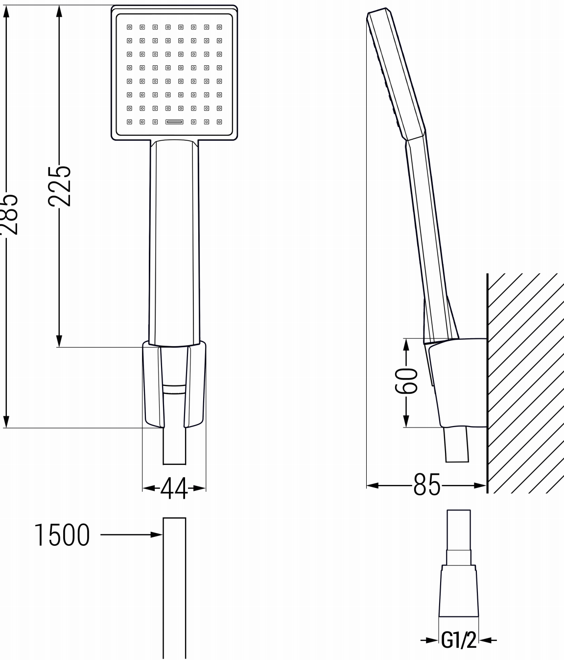 Hoogte douchekop: 225 mm