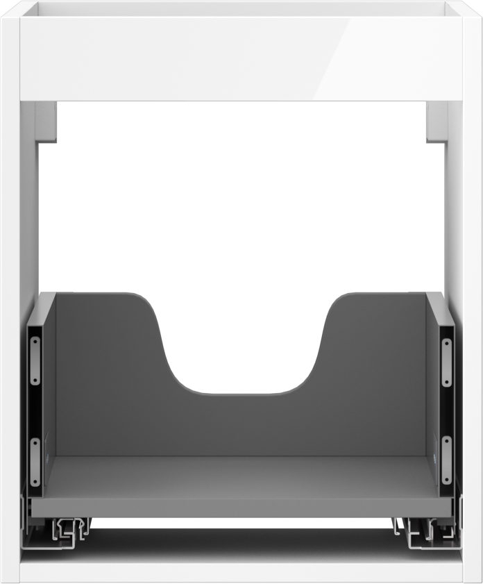 De uitsparing in de lade is zo ontworpen dat het de sifon kan bevatten, die noodzakelijk is in wastafelinstallaties. Hierdoor kan het meubel volledig functioneel worden gemonteerd, zonder dat er ruimte in de lade opgeofferd hoeft te worden voor installatiedoeleinden.