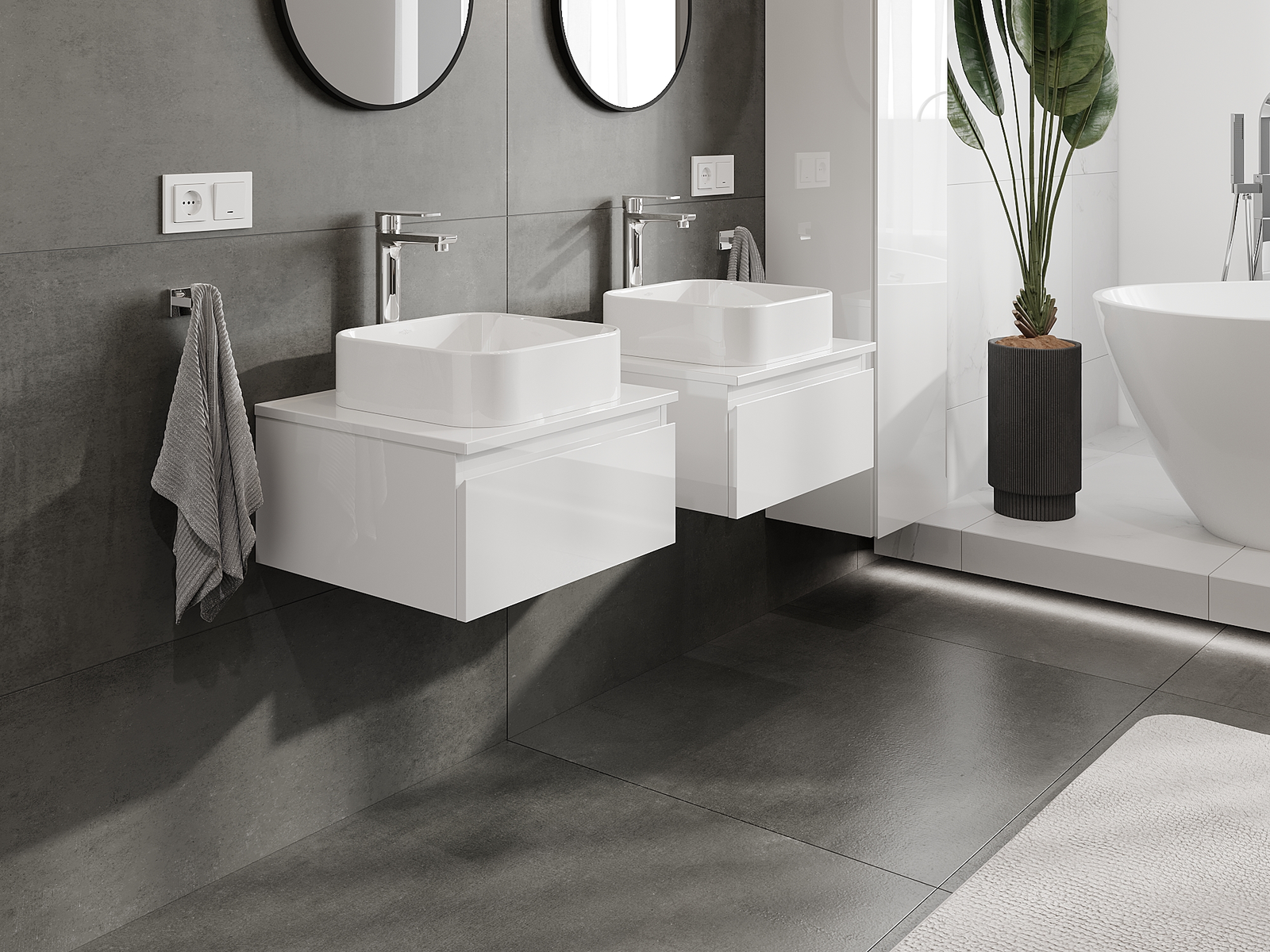 Onze modulaire badkamermeubels kunnen in verschillende kleurconfiguraties met elkaar worden gecombineerd, wat volledige personalisatie mogelijk maakt. Zowel het uiterlijk als de functies van de afzonderlijke elementen kunnen worden gekozen, waardoor de meubels kunnen worden aangepast aan persoonlijke stijlvoorkeuren en gebruikswensen.