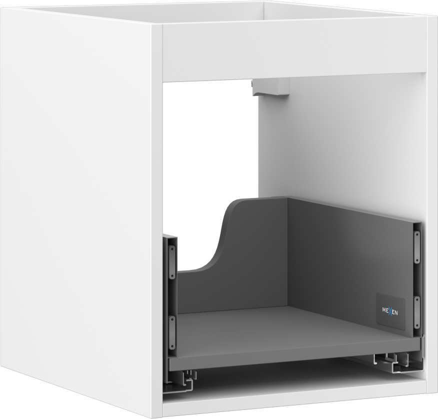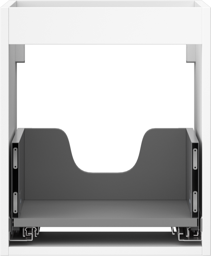 De uitsparing in de lade is ontworpen voor de sifon, die essentieel is bij het installeren van wastafels. Hierdoor kan de unit volledig functioneel worden geïnstalleerd zonder dat er laderuimte hoeft te worden opgeofferd.