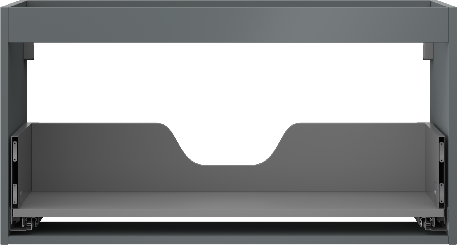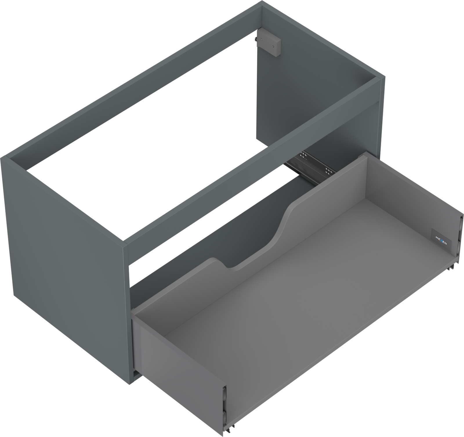 De uitsparing in de lade is zo ontworpen dat het de sifon kan bevatten, die noodzakelijk is in wastafelinstallaties. Hierdoor kan het meubel volledig functioneel worden gemonteerd, zonder dat er ruimte in de lade opgeofferd hoeft te worden voor installatiedoeleinden.