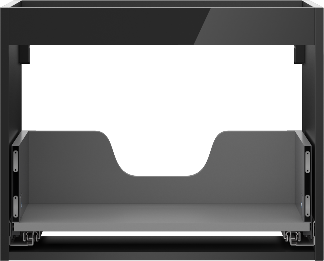 De uitsparing in de lade is zo ontworpen dat het de sifon kan bevatten, die noodzakelijk is in wastafelinstallaties. Hierdoor kan het meubel volledig functioneel worden gemonteerd, zonder dat er ruimte in de lade opgeofferd hoeft te worden voor installatiedoeleinden.