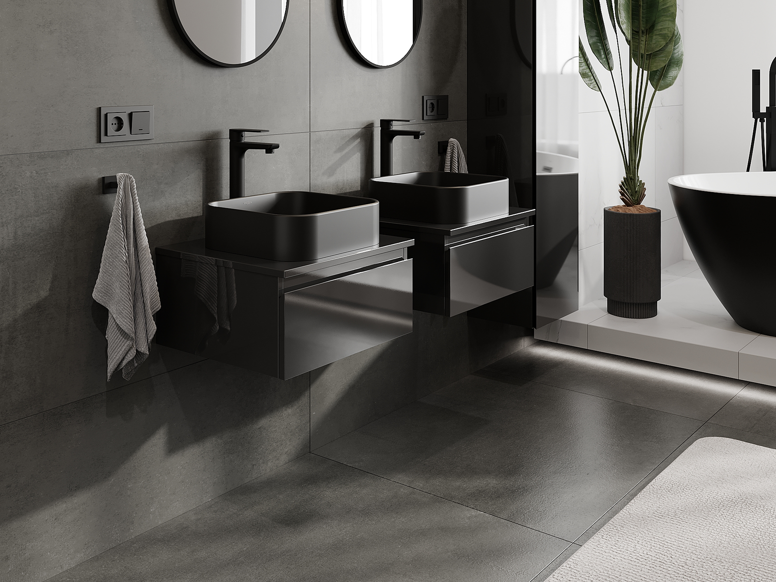 Onze modulaire badkamermeubels kunnen in verschillende kleurconfiguraties met elkaar worden gecombineerd, wat volledige personalisatie mogelijk maakt. Zowel het uiterlijk als de functies van de afzonderlijke elementen kunnen worden gekozen, waardoor de meubels kunnen worden aangepast aan persoonlijke stijlvoorkeuren en gebruikswensen.
