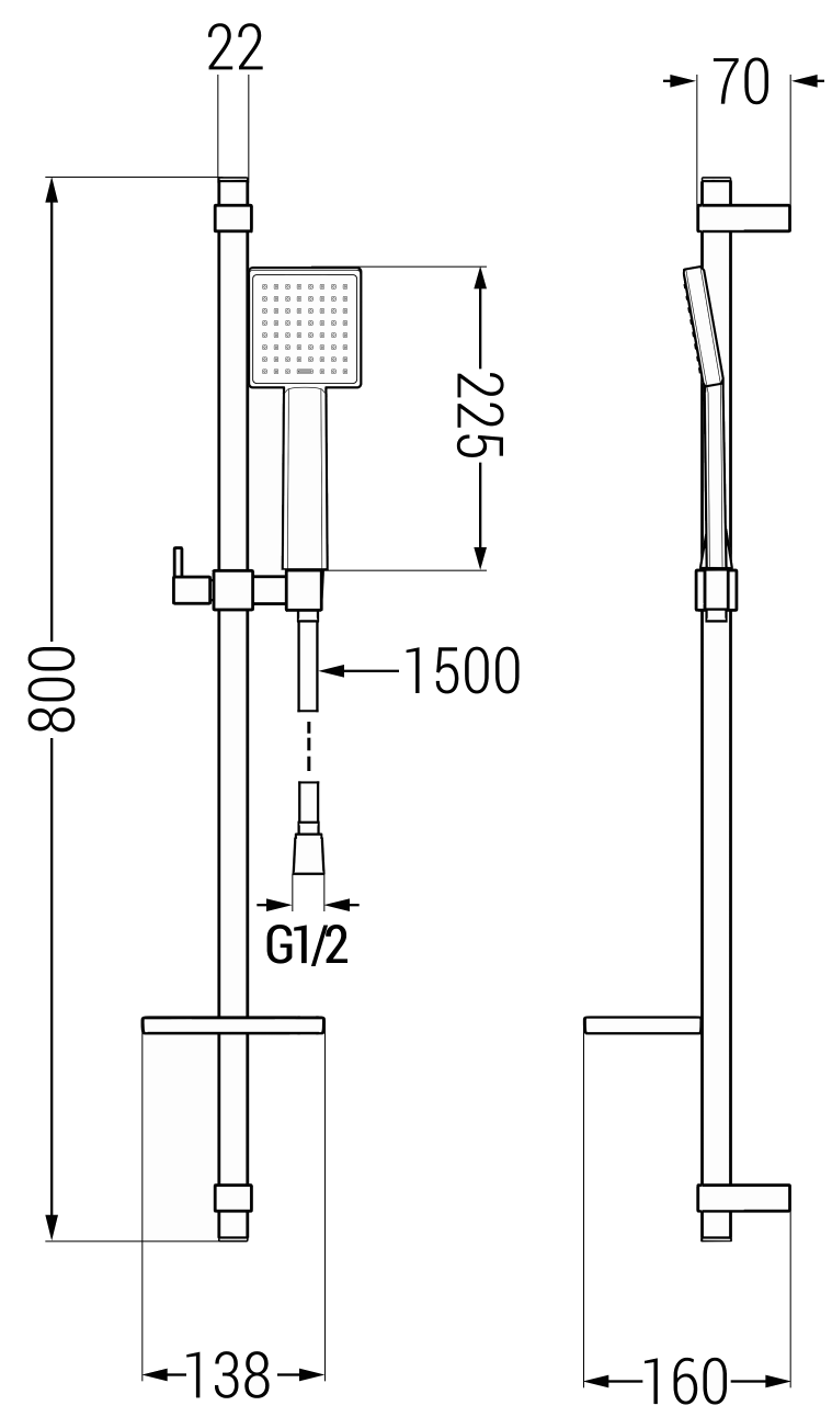 Hoogte handdouche: 225 mm