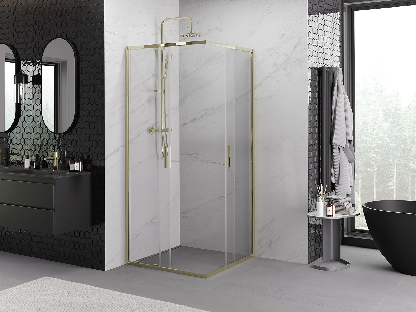 Schuifdeuren bewegen op speciale rails en hebben geen extra ruimte nodig om te openen, waardoor ze geschikt zijn voor kleinere badkamers. Dankzij dubbele metalen wielen is hun beweging soepel.