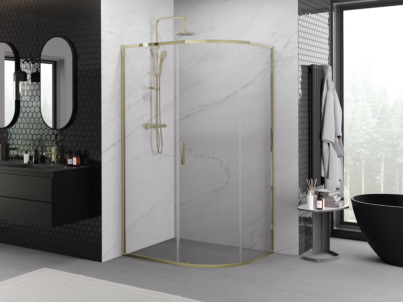 Mexen Exo halfronde douchecabine schuifdeur 90 x 80 cm, transparant, goud - 8131-090-080-50-00