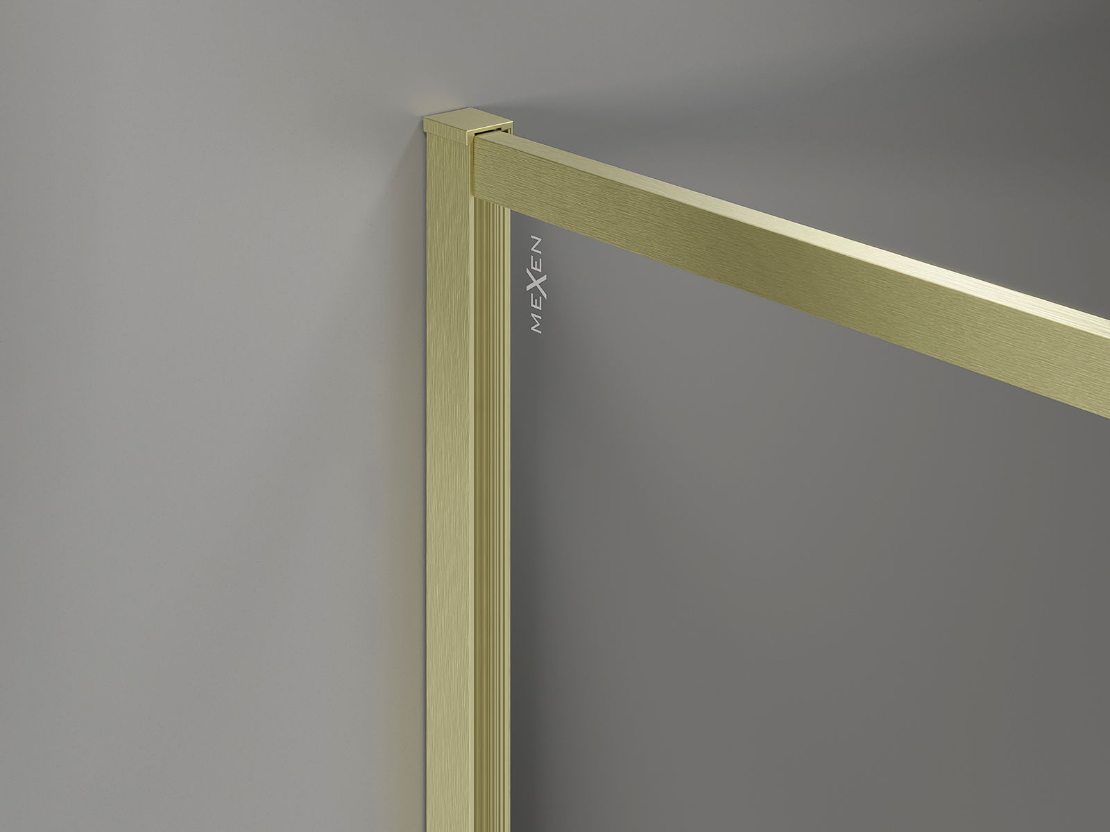 Mexen Kioto-F douchewand Walk-in met frame 90 x 70 cm, transparant 8 mm, goud geborsteld - 800-090-202-04-55-070