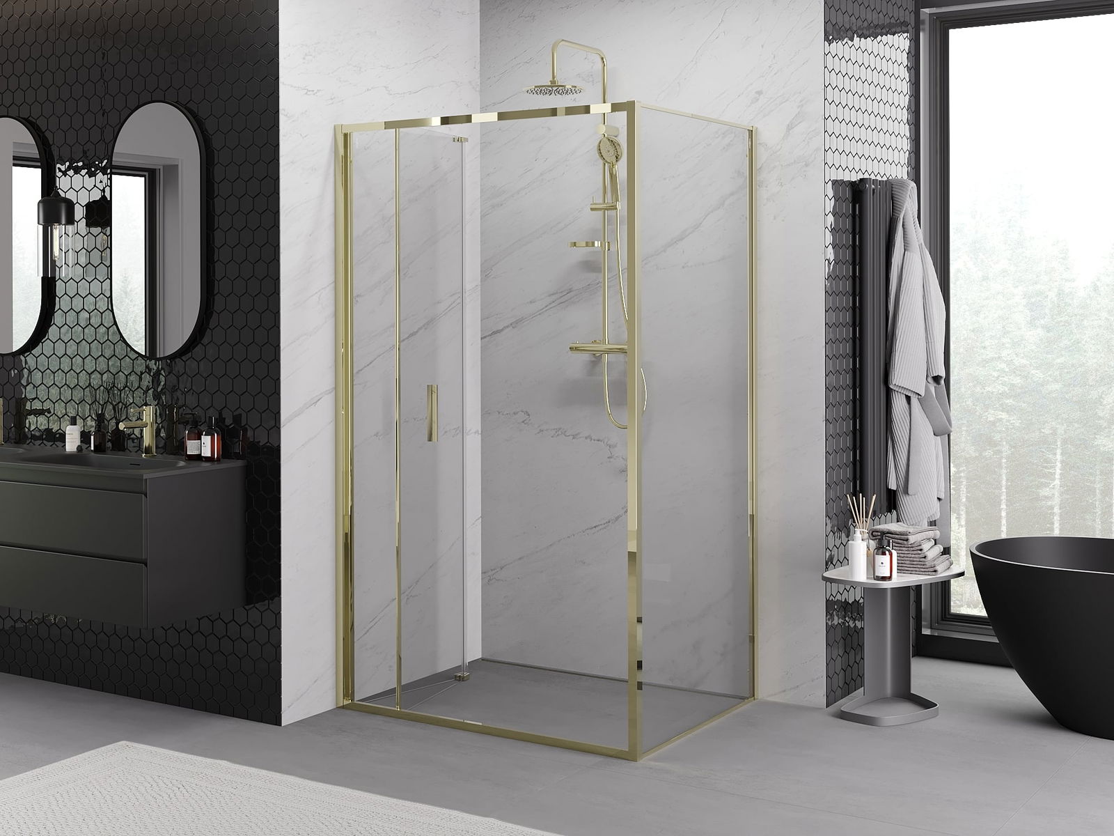 Handige en comfortabele greep is gemaakt van duurzaam en weerbestendig metaal. De modieuze vorm in combinatie met een afwerking die past bij de kleur van de profielen geeft het geheel een moderne en stijlvolle uitstraling, wat de esthetiek van elke badkamer benadrukt.