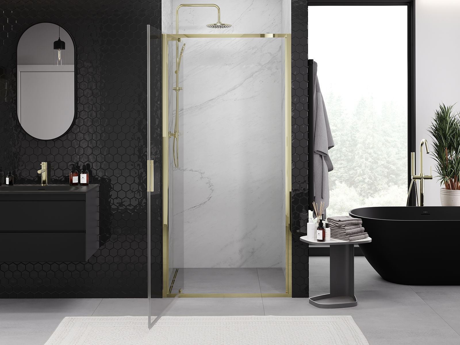De handige en comfortabele handgreep is gemaakt van duurzaam en stevig metaal. De modieuze vorm, gecombineerd met een afwerking die qua kleur aansluit bij de profielen, geeft het geheel een moderne en stijlvolle uitstraling en versterkt de esthetiek van elke badkamer.